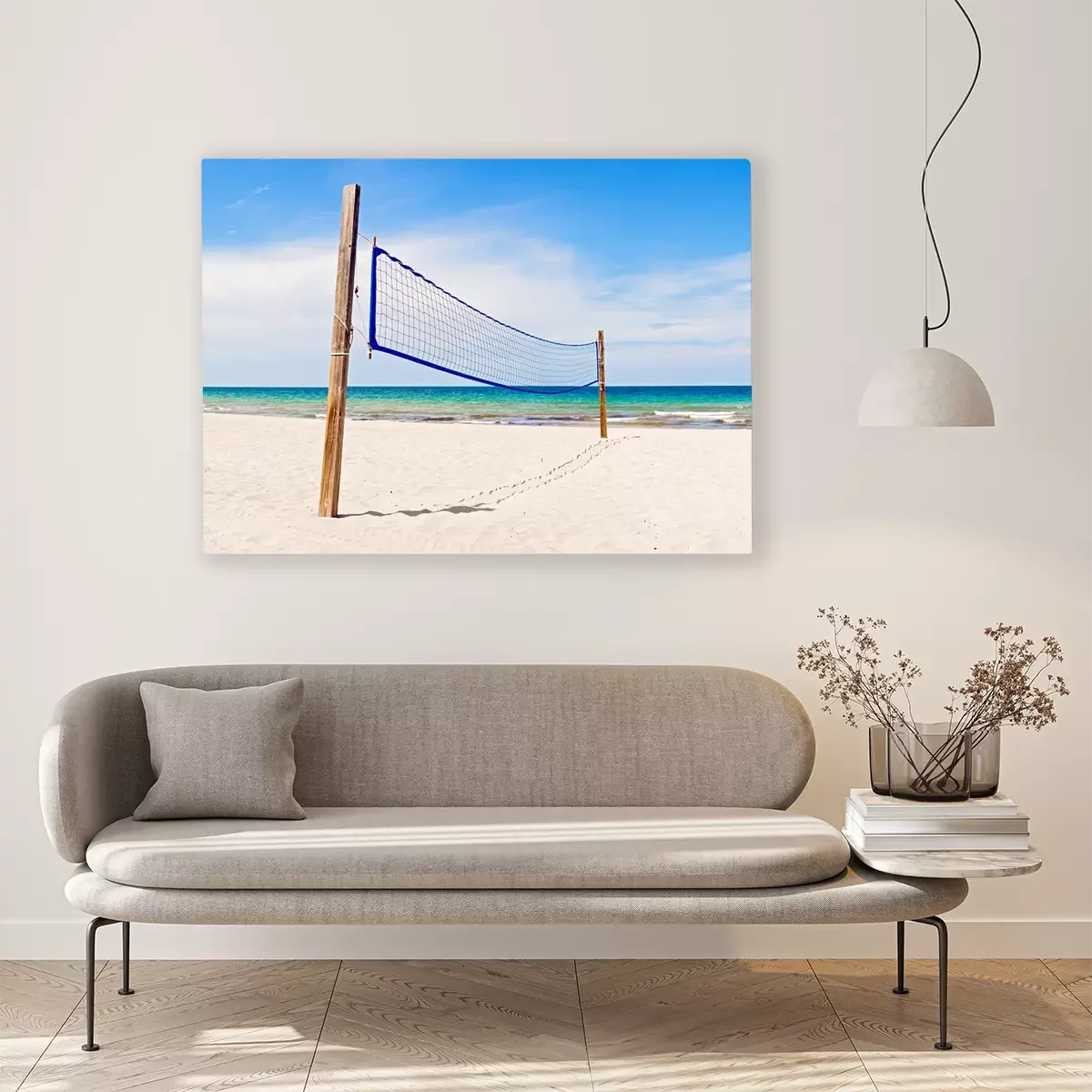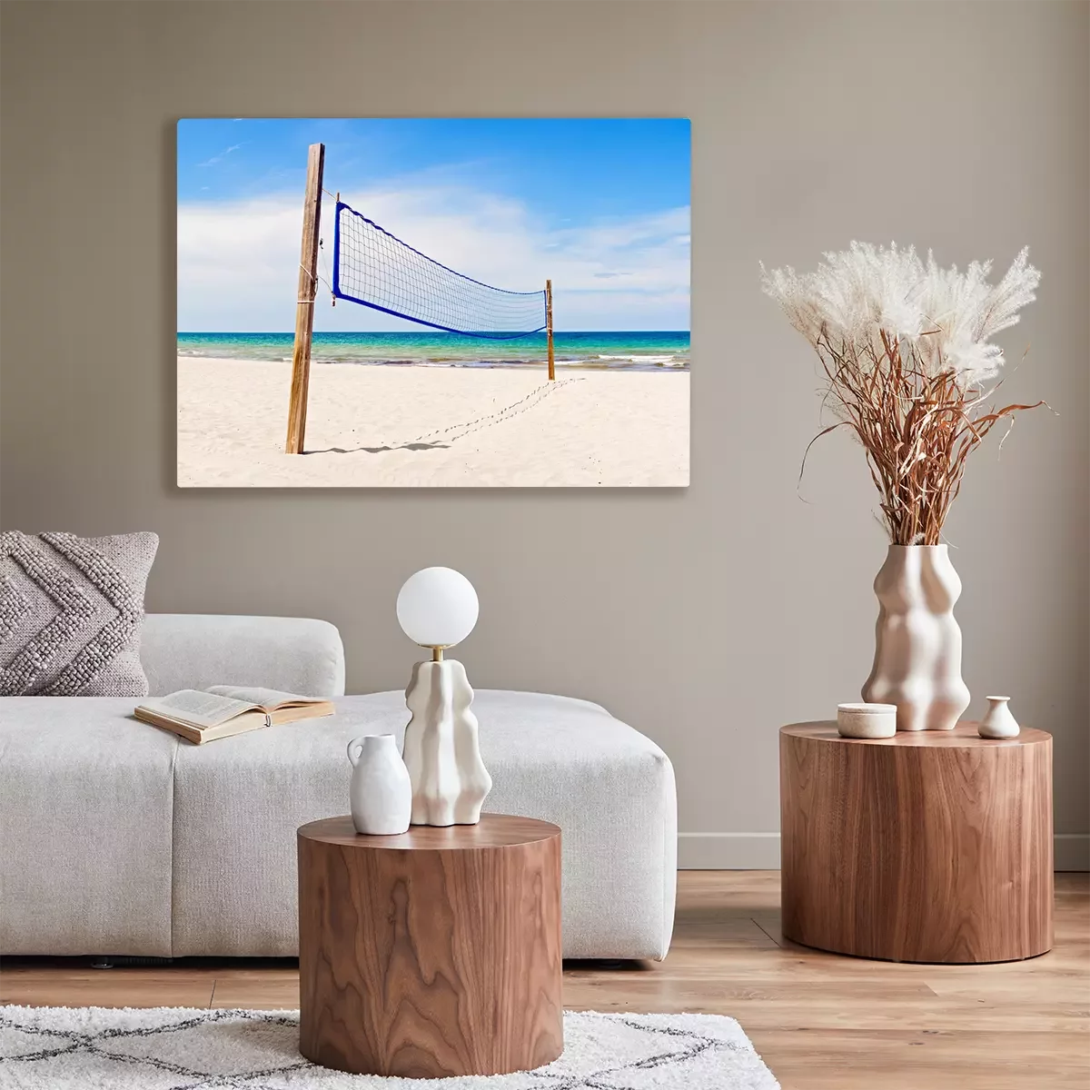 Tableau  Terrain de volleyball de plage et nette à Miami en Floride sur une belle journée d'été ensoleillée