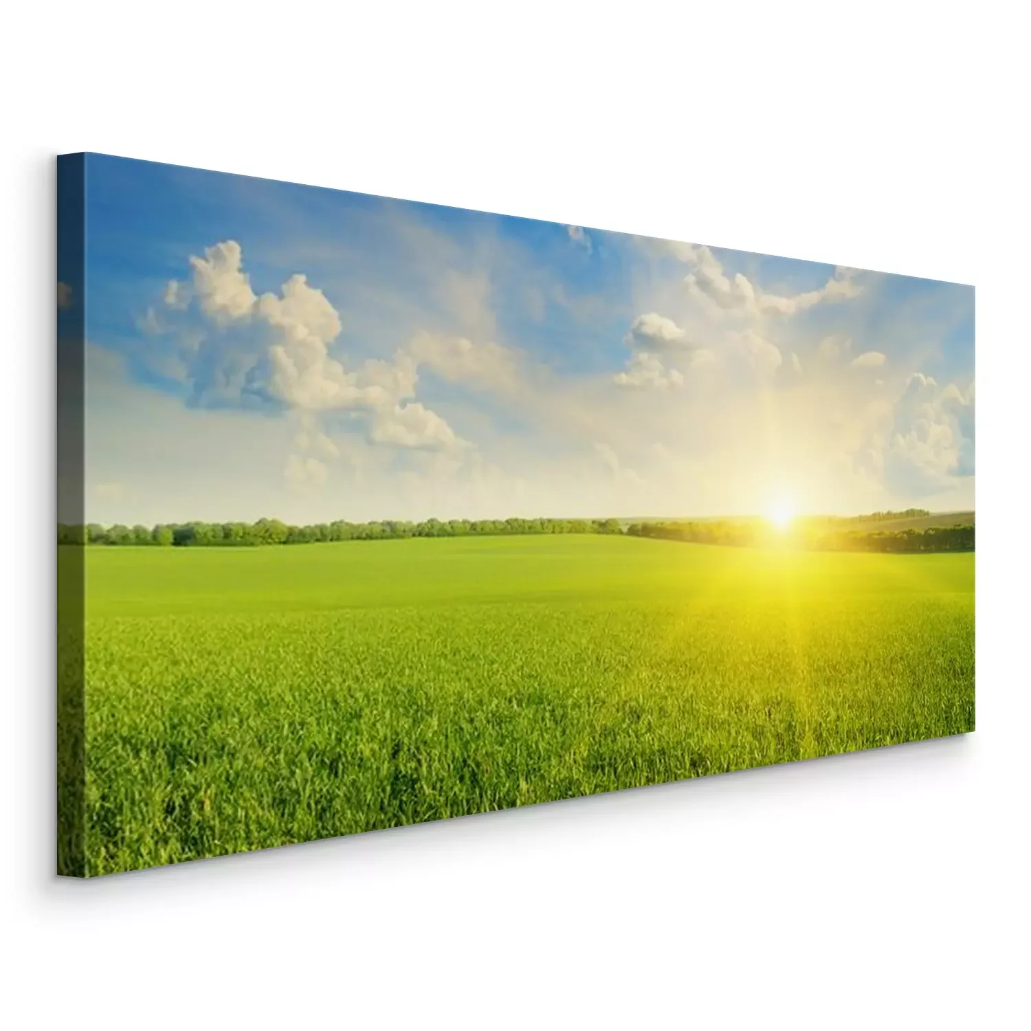 Tableau  terrain, le lever du soleil et le ciel bleu