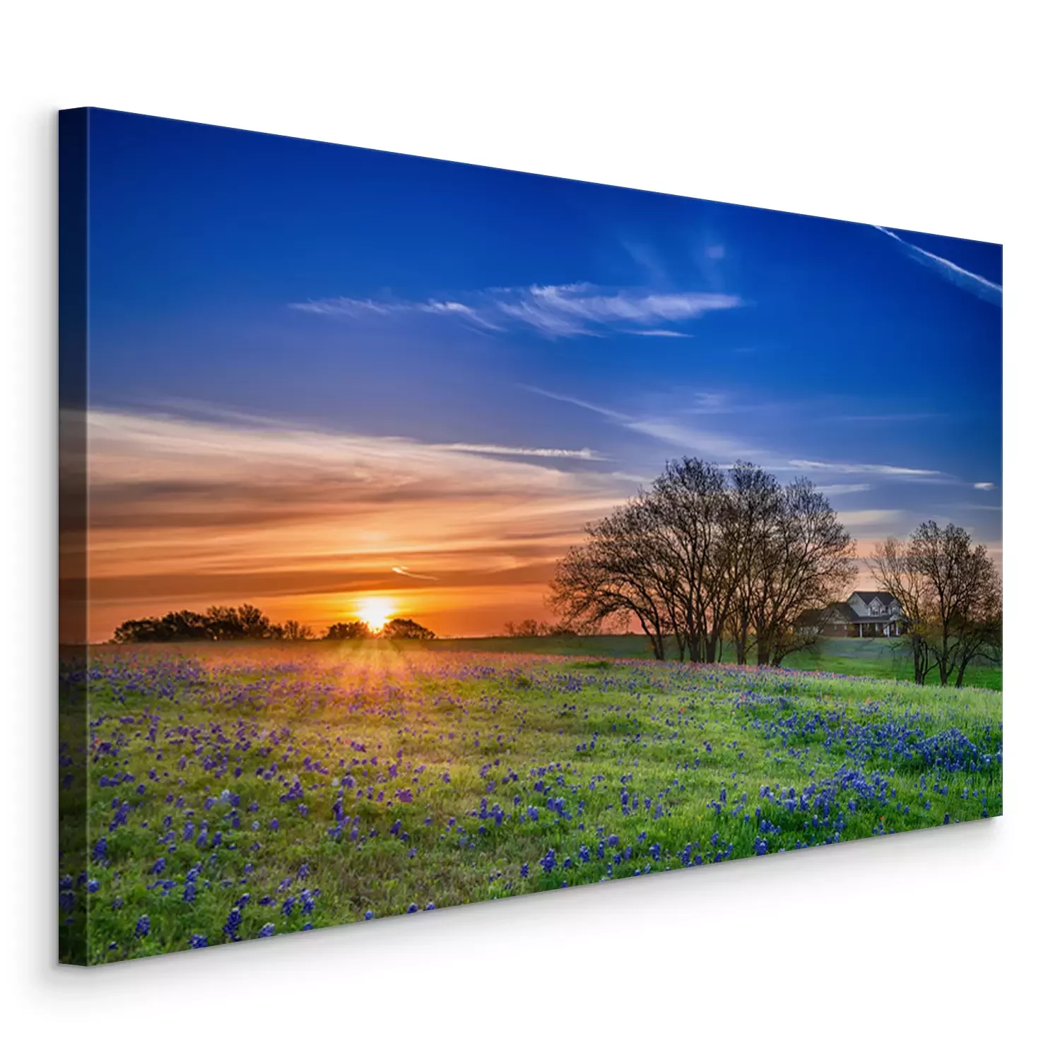 Tableau  Texas bluebonnet champ de printemps de fleurs sauvages au lever du soleil