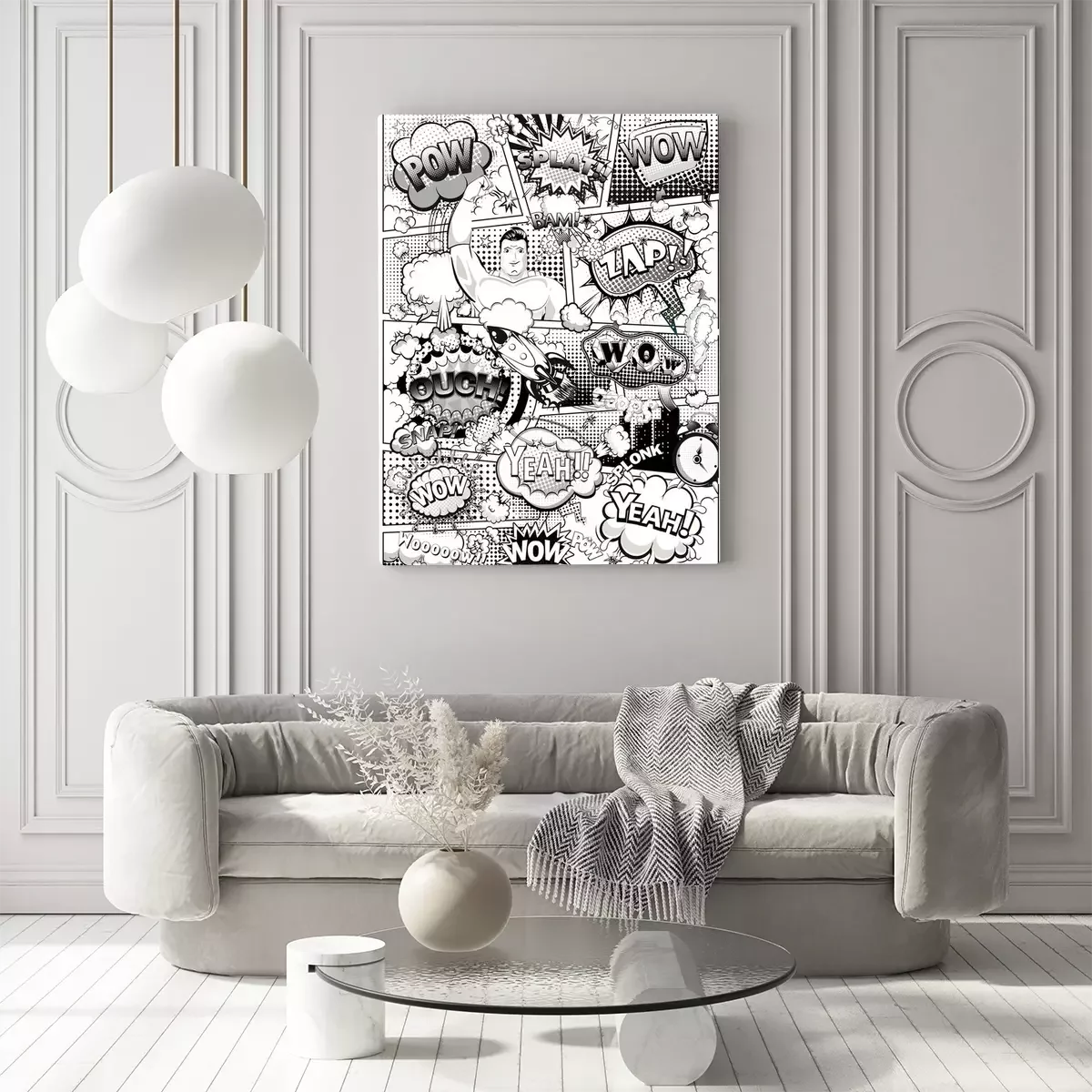 Tableau  Texte de bande dessinée en noir et blanc