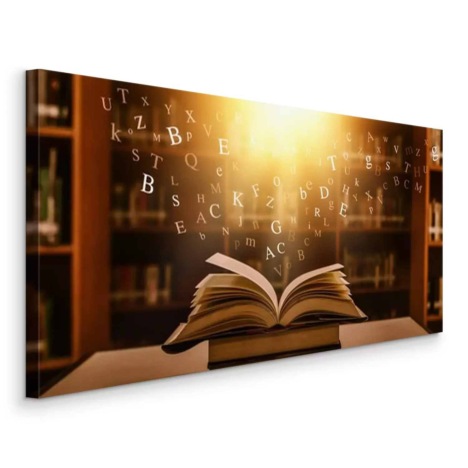 Tableau  	 The concept of education by planting a tree of knowledge in the opening of an old book in the library and the magical magic of light that flies to the destination of success. Beautiful background