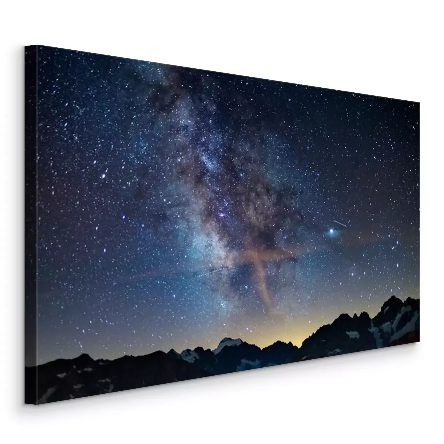 Tableau  The Milky Way arch starry sky on the Alps, Massif des Ecrins, Briancon Serre Chevalier ski resort, France. Panoramic view high mountain range and glaciers, astro photography, stargazing