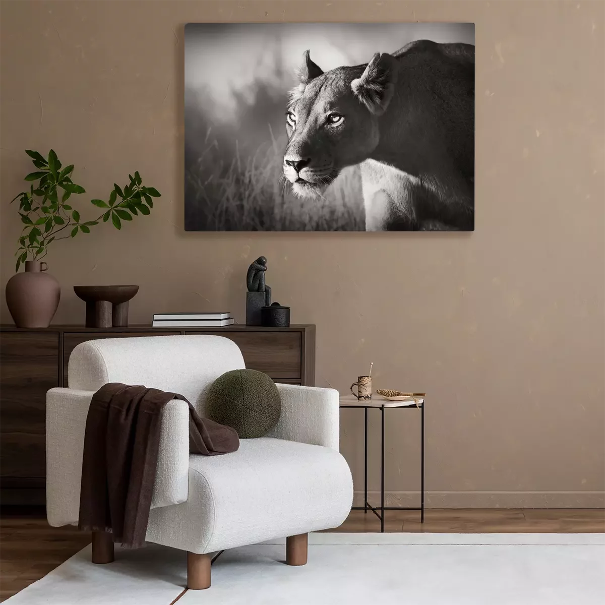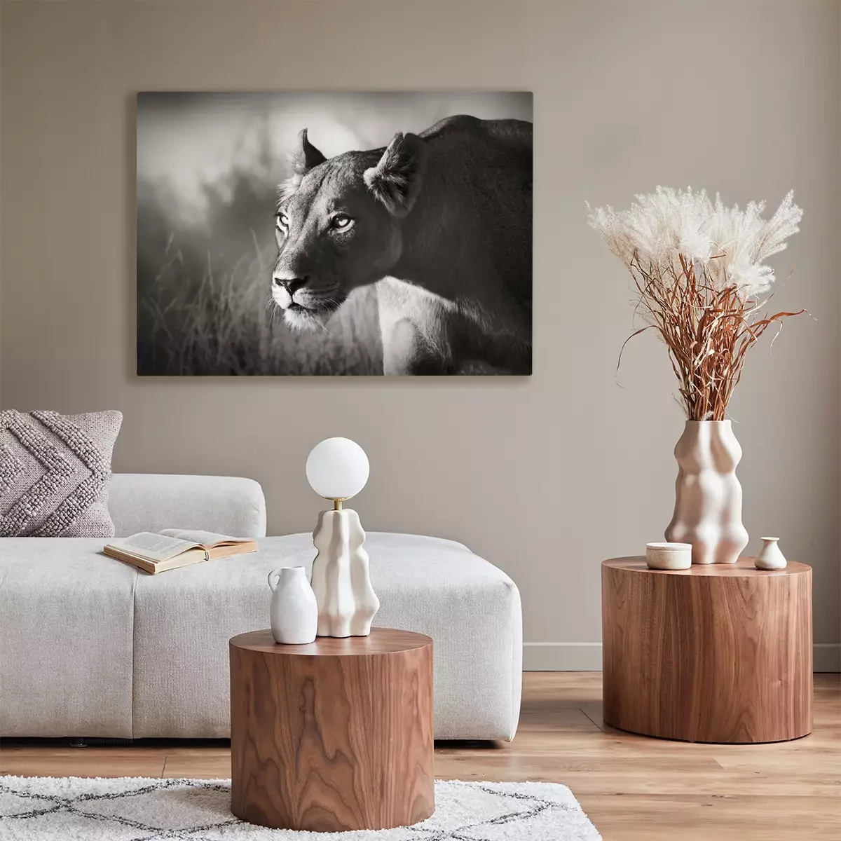 Tableau : Thème noir et blanc avec un animal sauvage