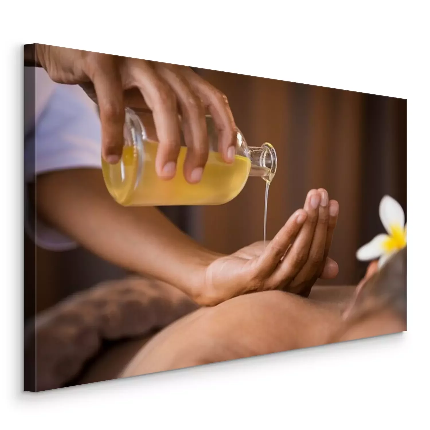 Tableau  Thérapeute versant de l'huile de massage au spa