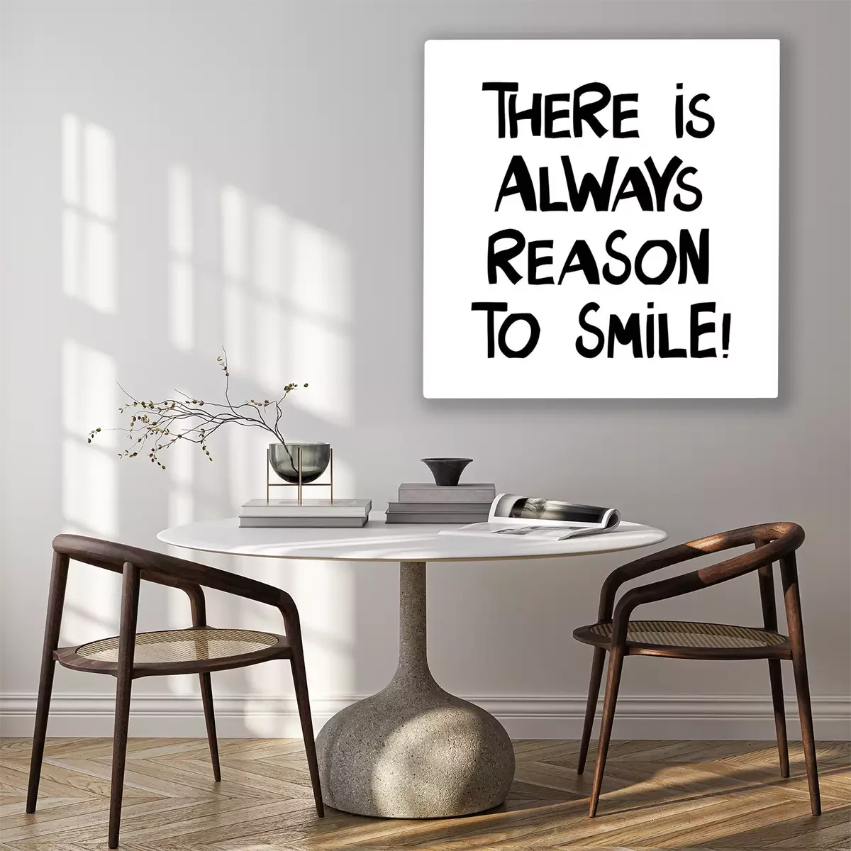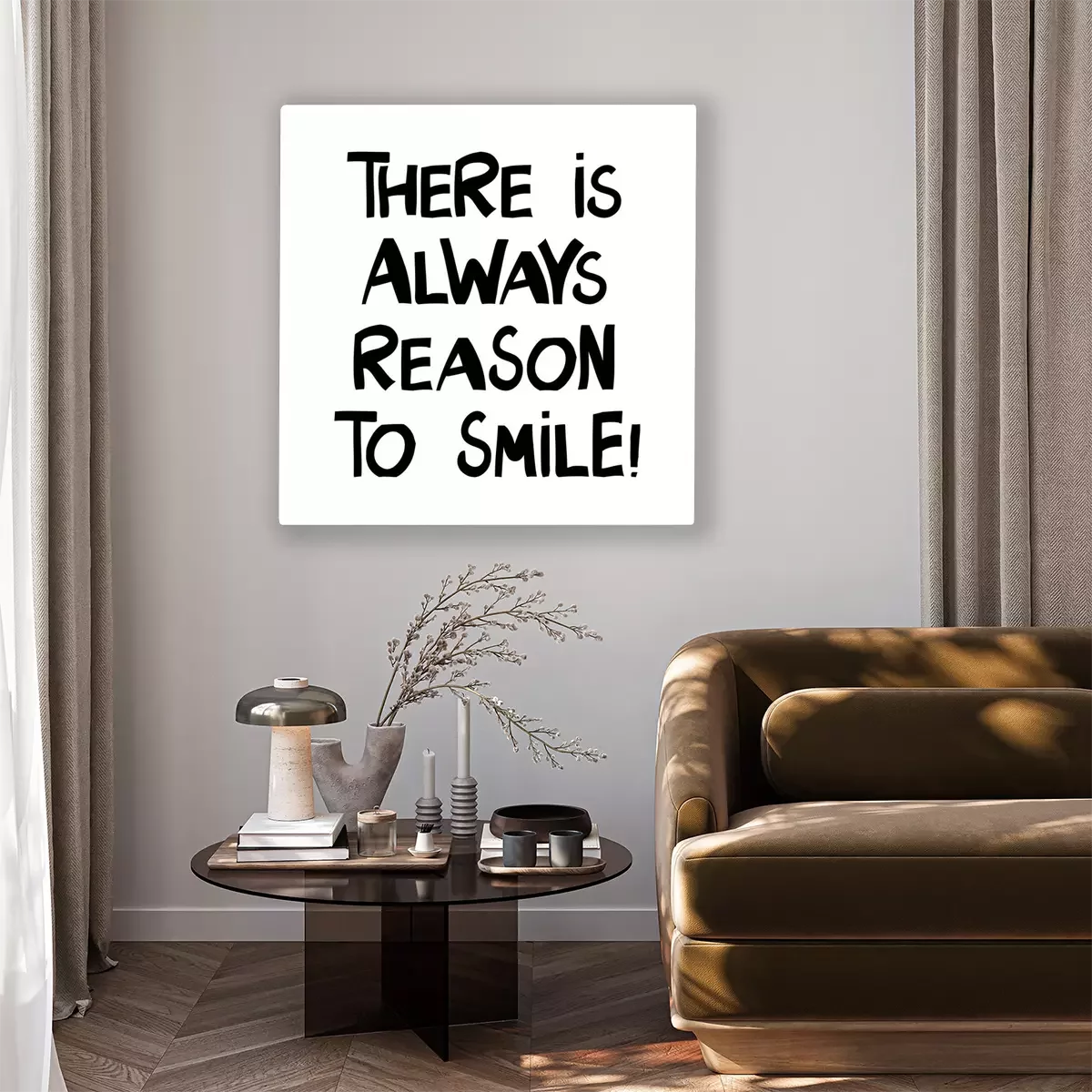 Tableau : There is always reason to smile. Motivation quote. Cute hand drawn lettering in modern scandinavian style. Isolated on white background. Vector stock illustration.