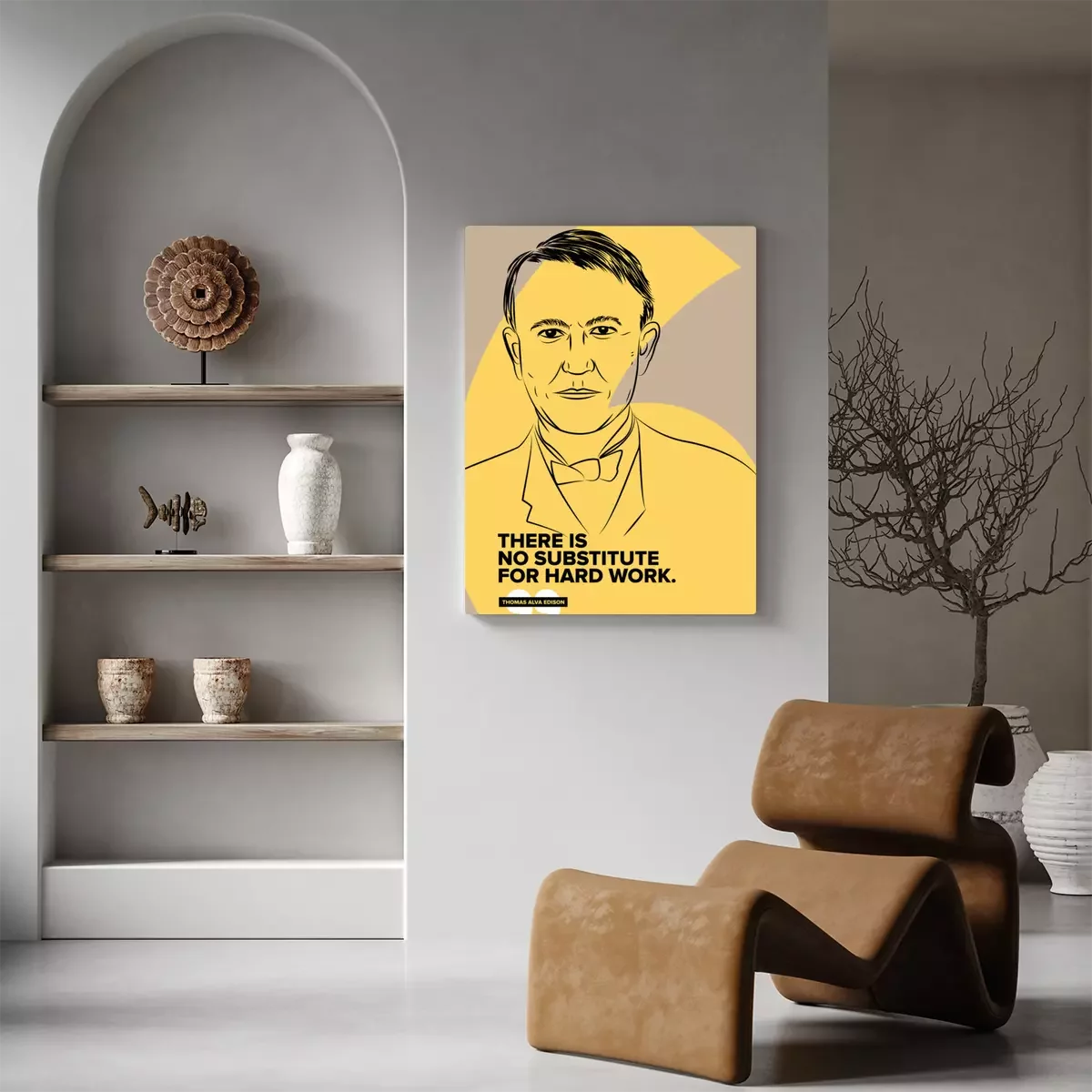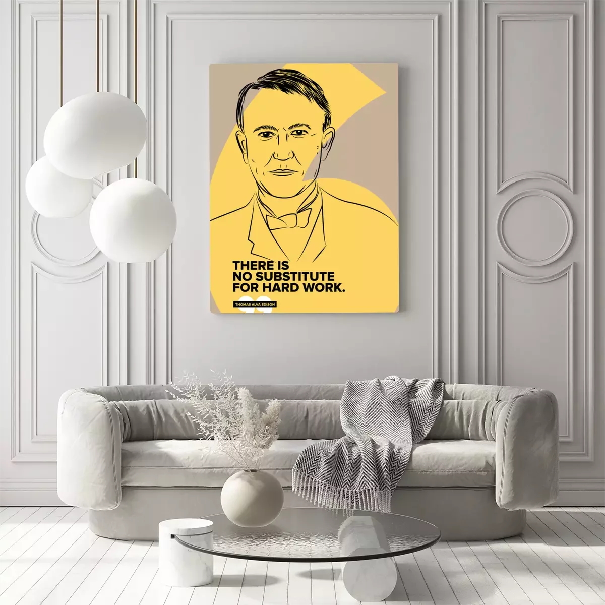 Tableau  Thomas Alva Edison vector sketch illustration with motivational quote.