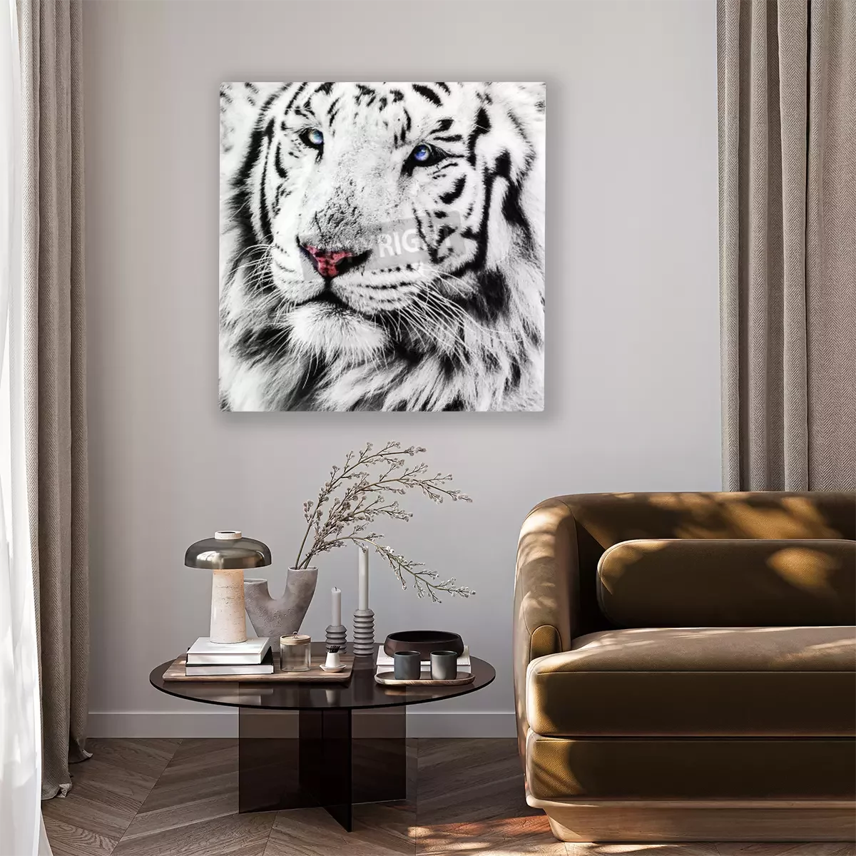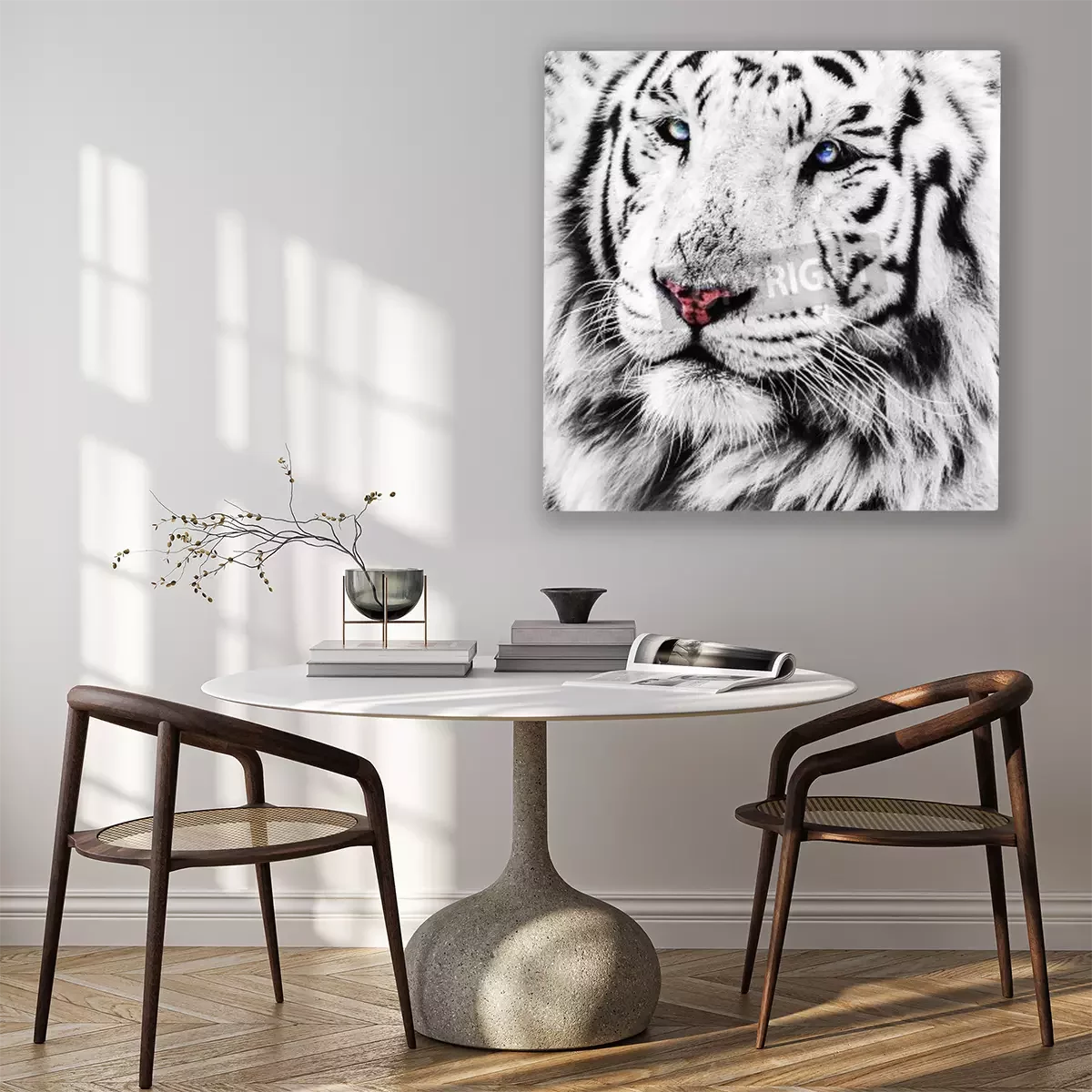 Tableau : Tigre blanc aux yeux bleus