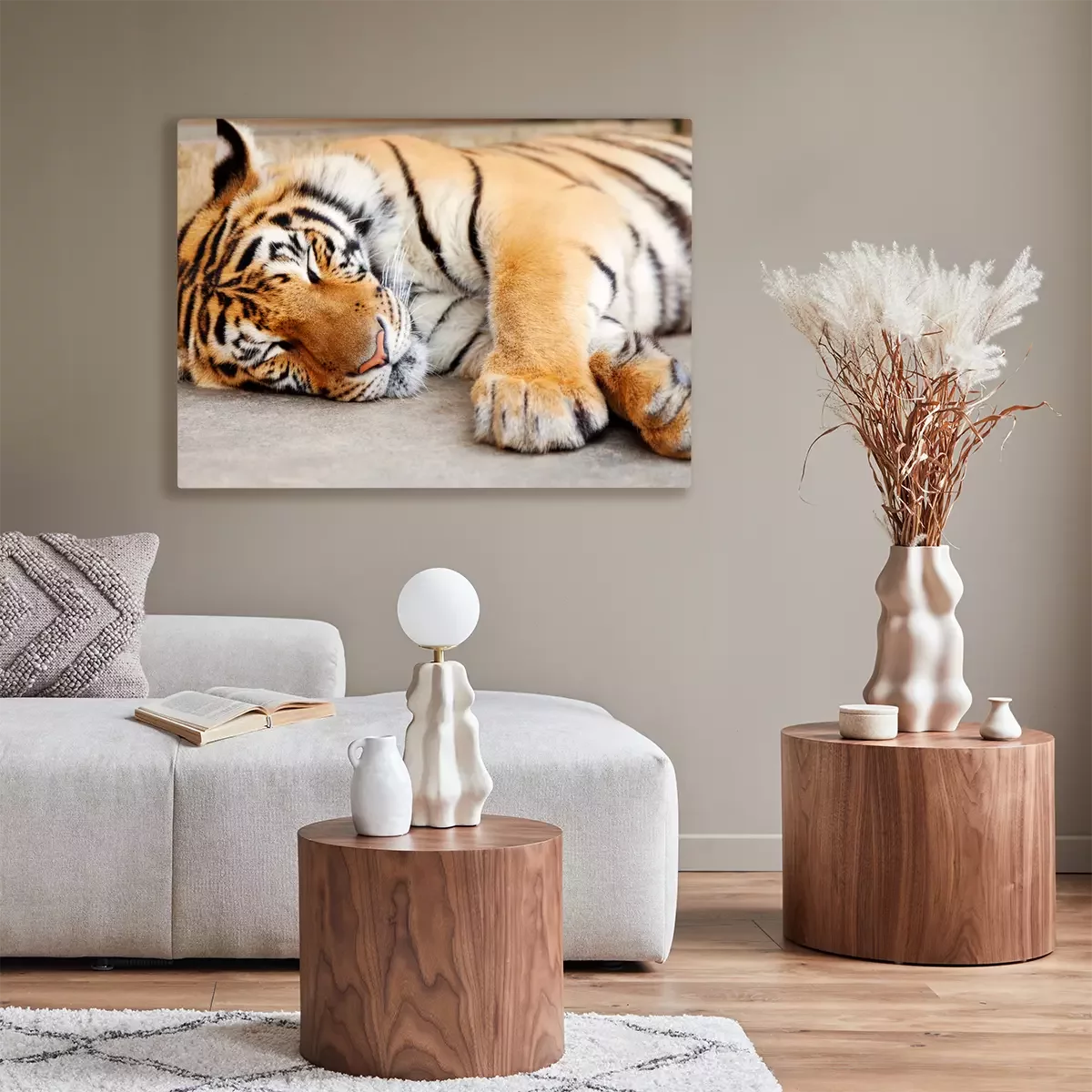 Tableau : Tigre endormi à l'extérieur