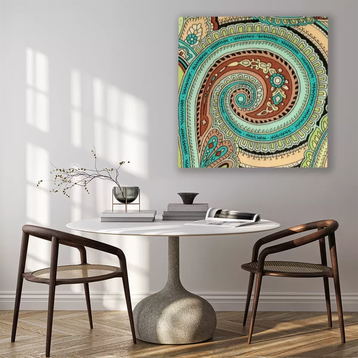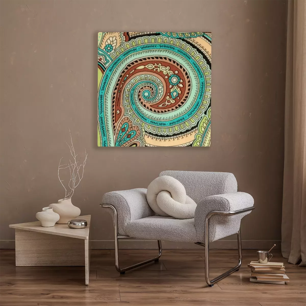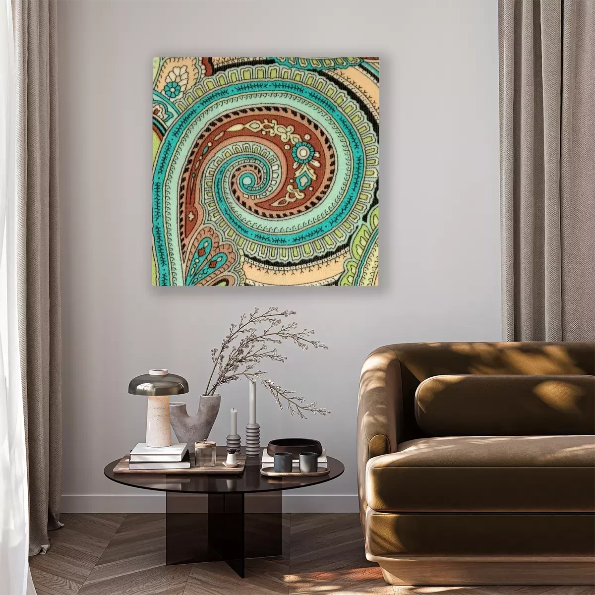 Tableau  tissu vintage coloré de bleu et de brun imprimé cachemire