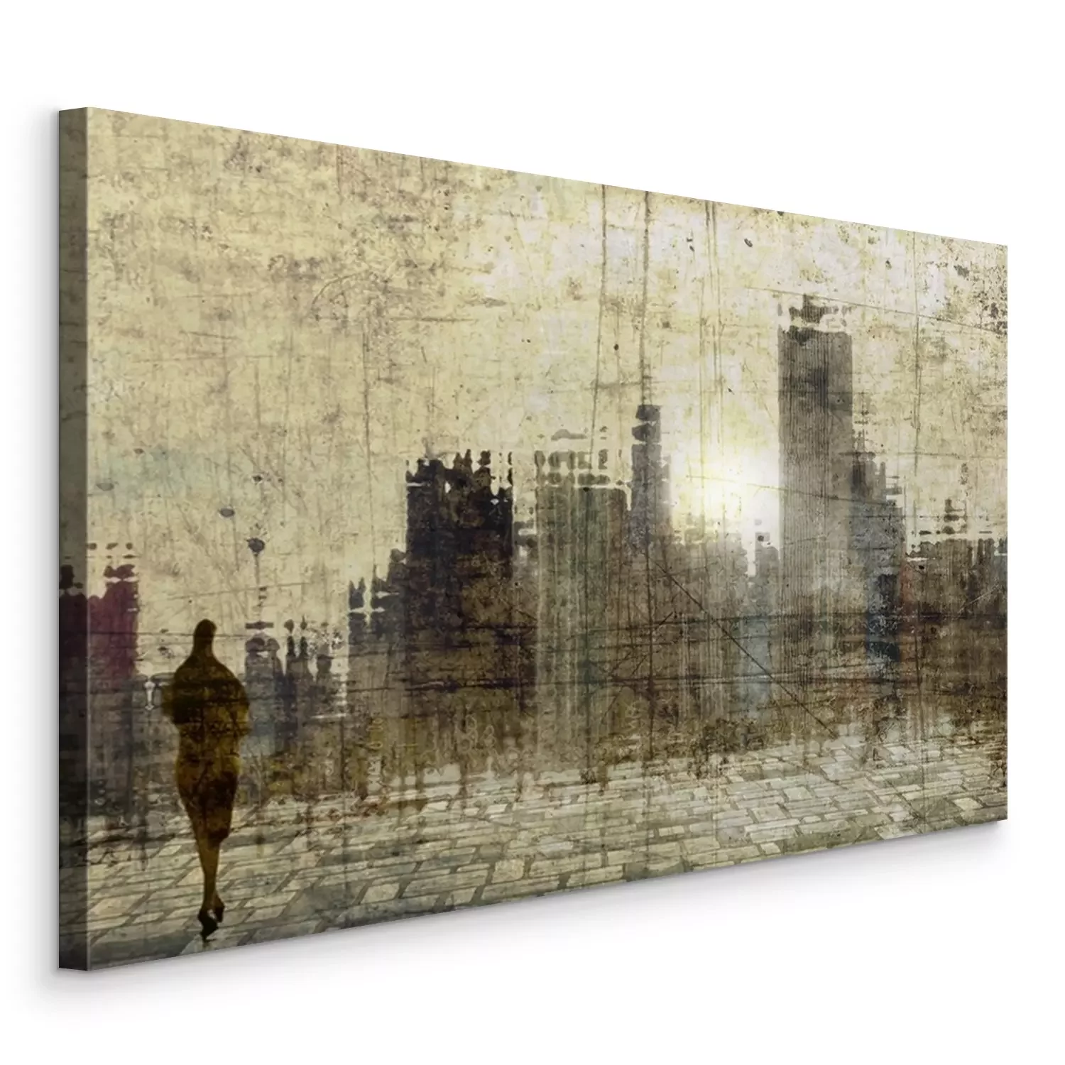 Tableau  Toits de la ville ancienne avec petite figure féminine