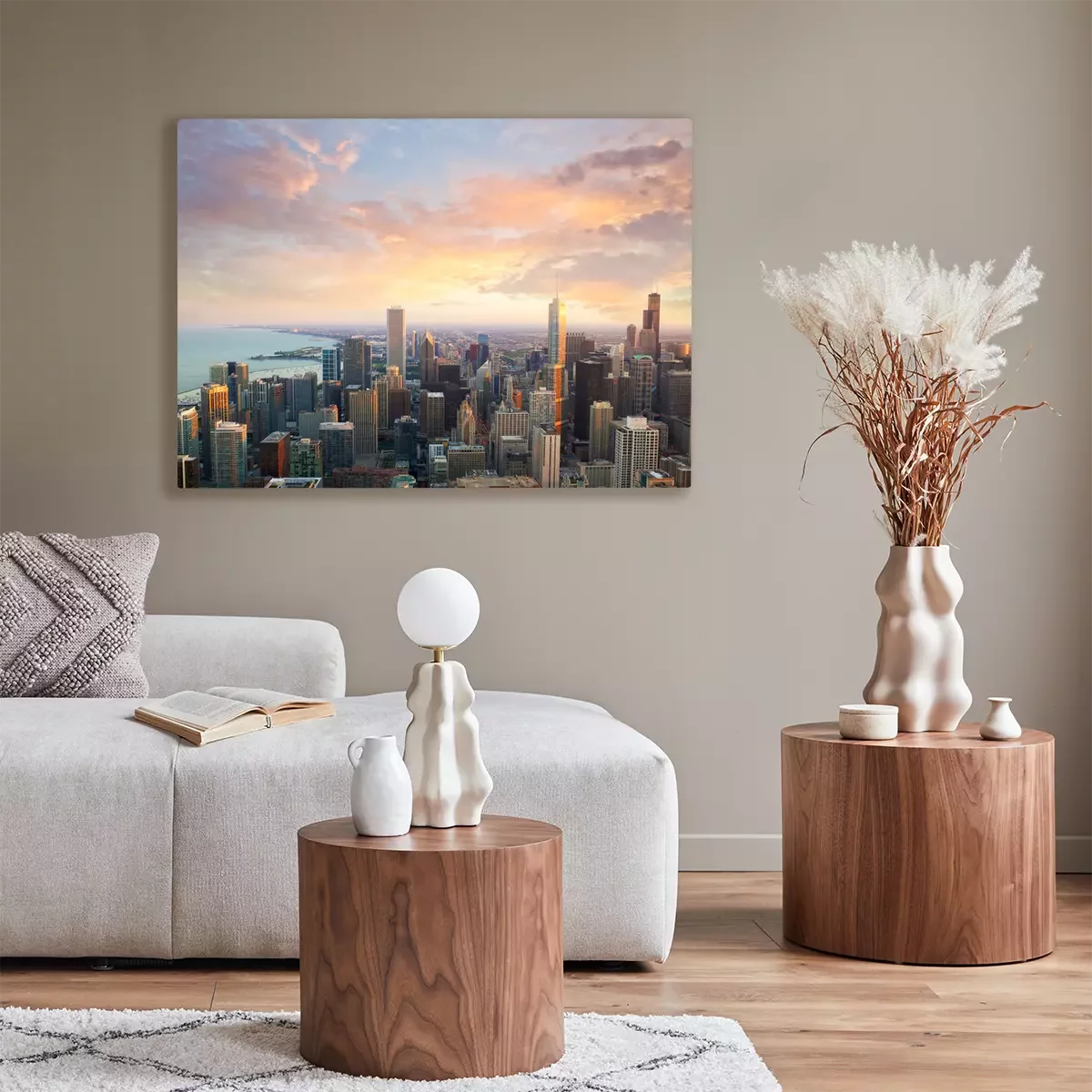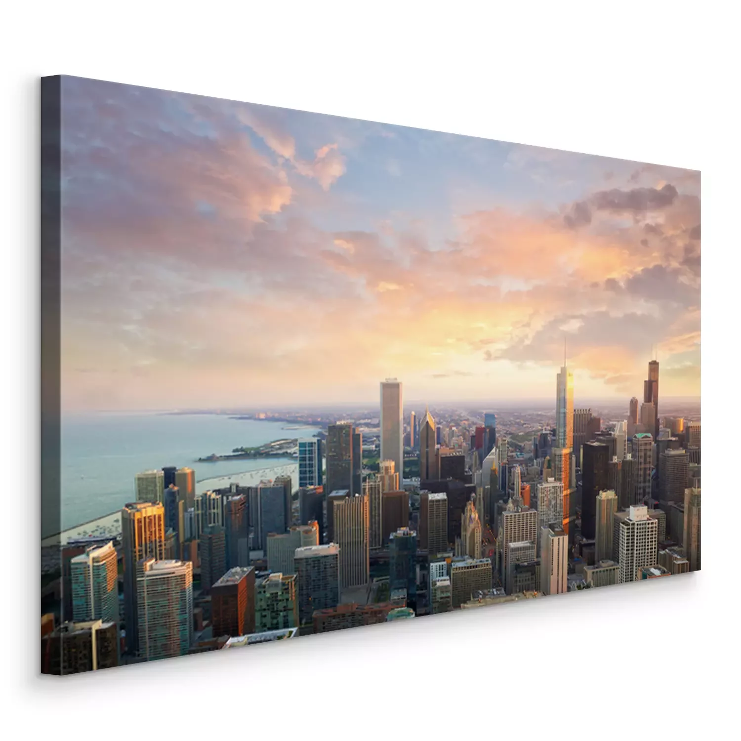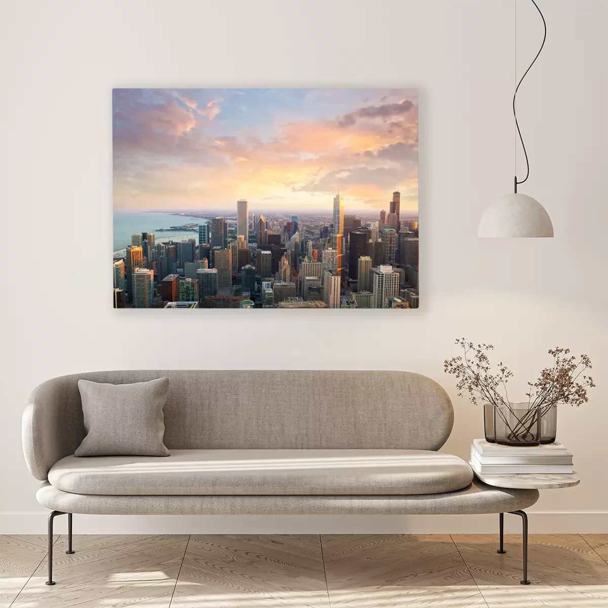 Aérienne panorama Chicago au coucher du soleil, IL, USA