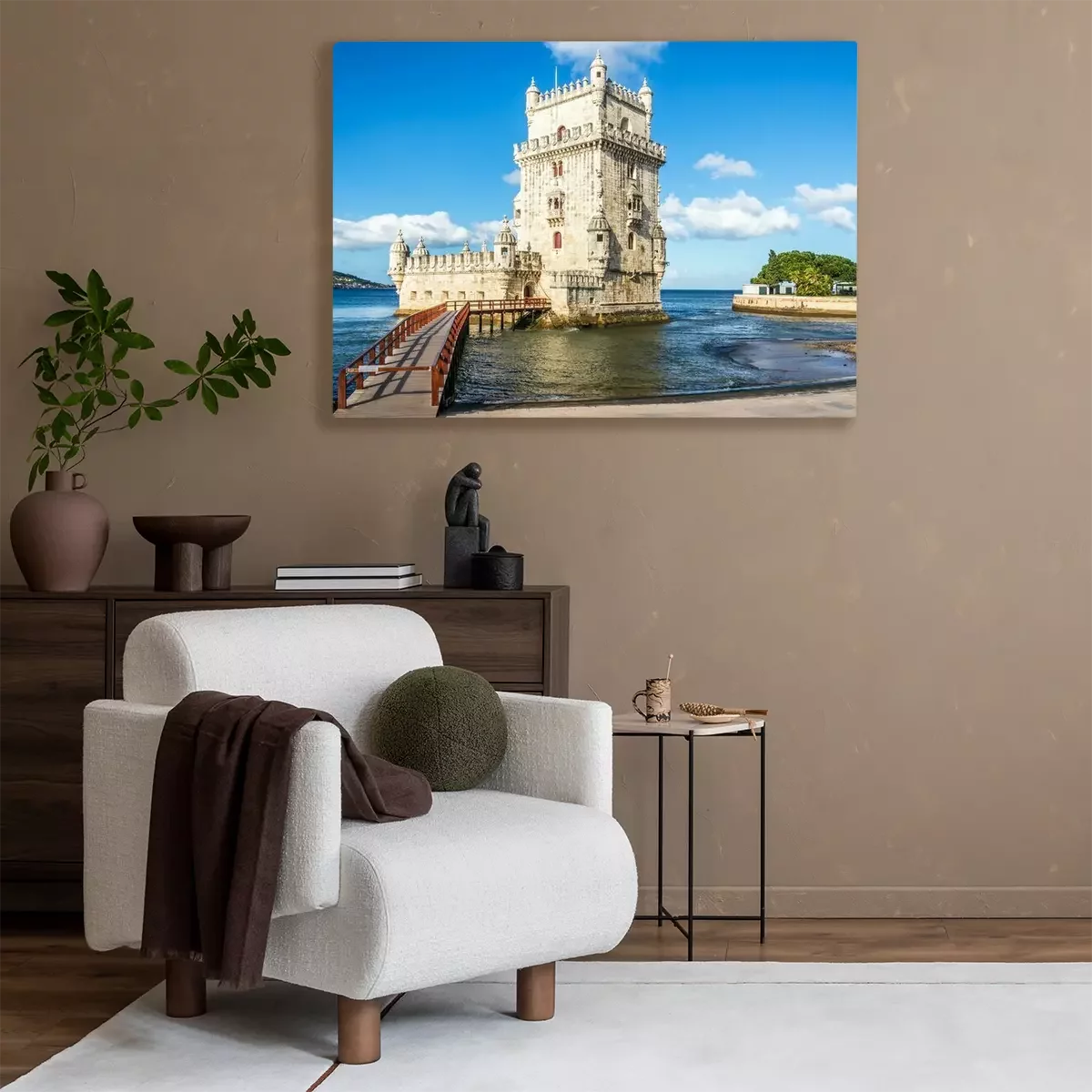Tableau  Tour de Belém sur la rive à Lisbonne