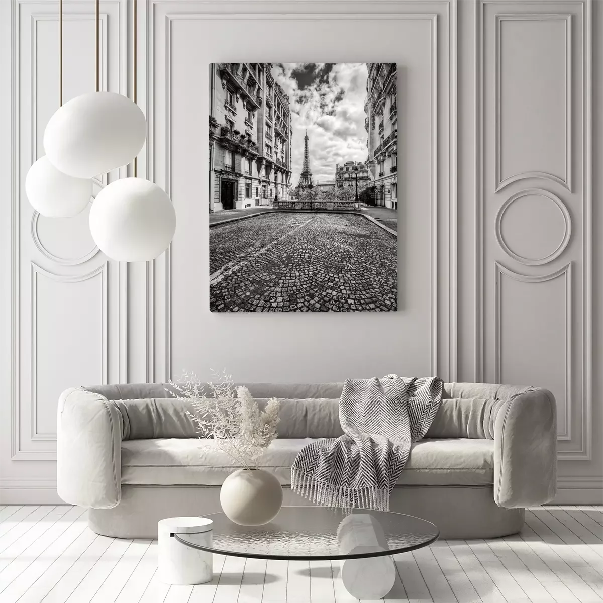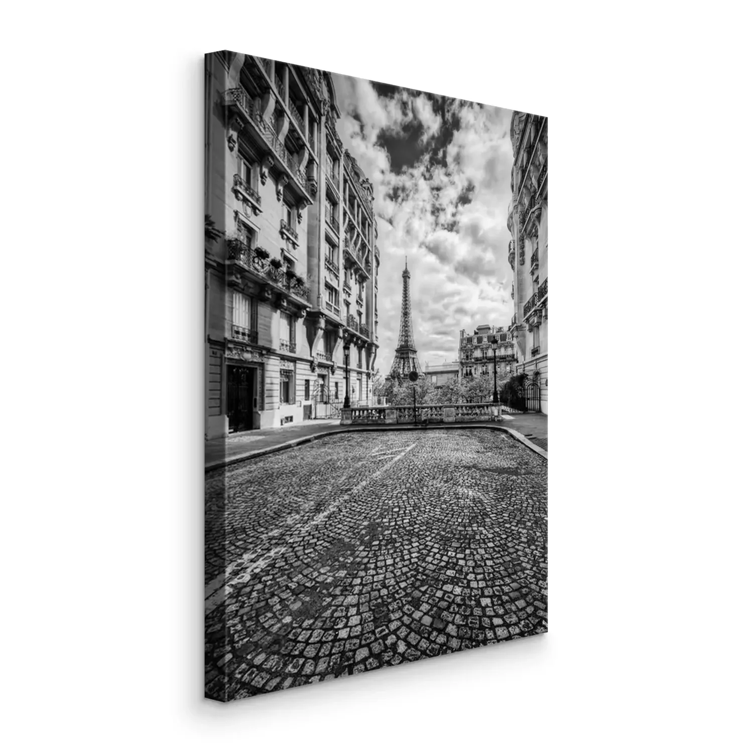 Tableau  Tour Eiffel vu de la rue à Paris, France. Noir et blanc