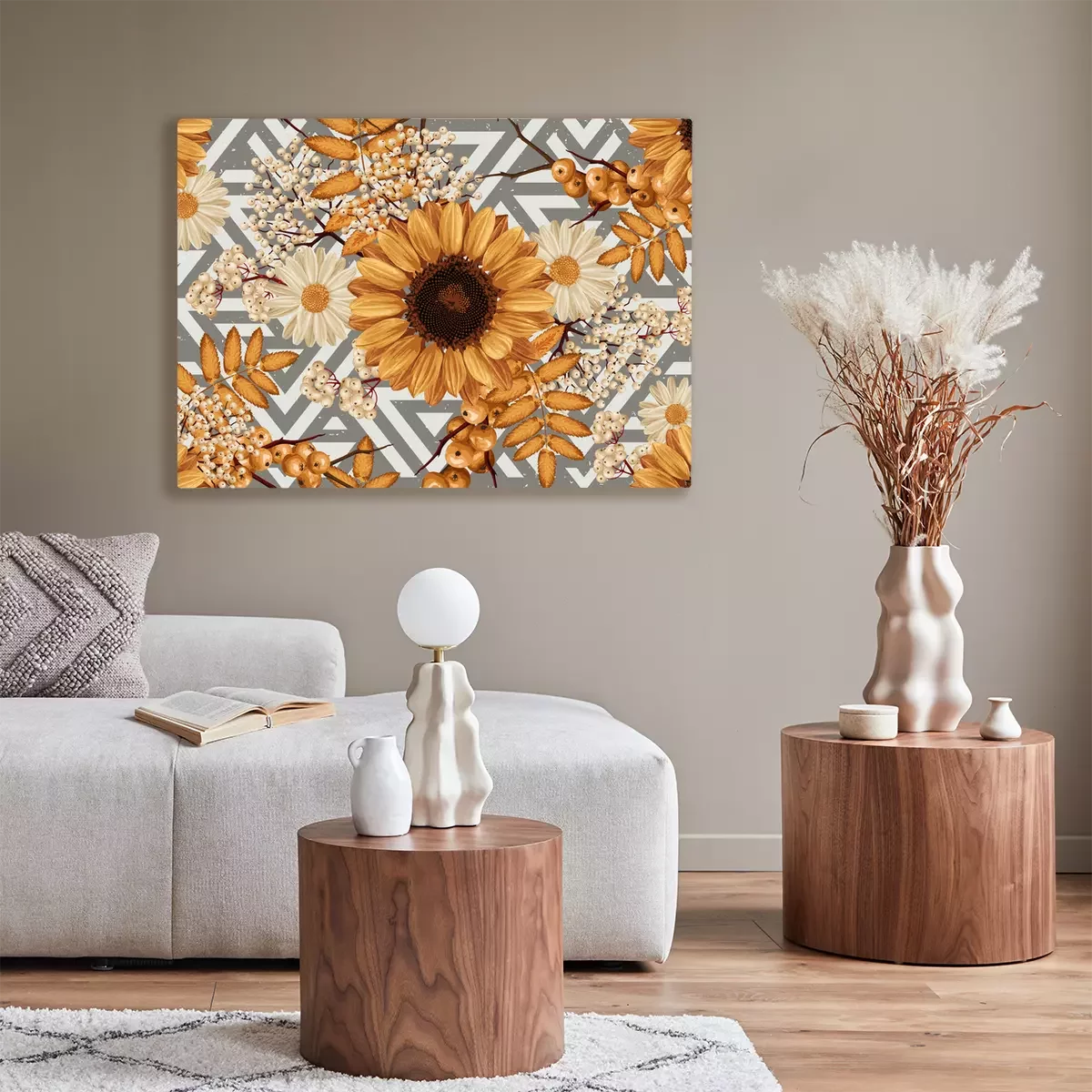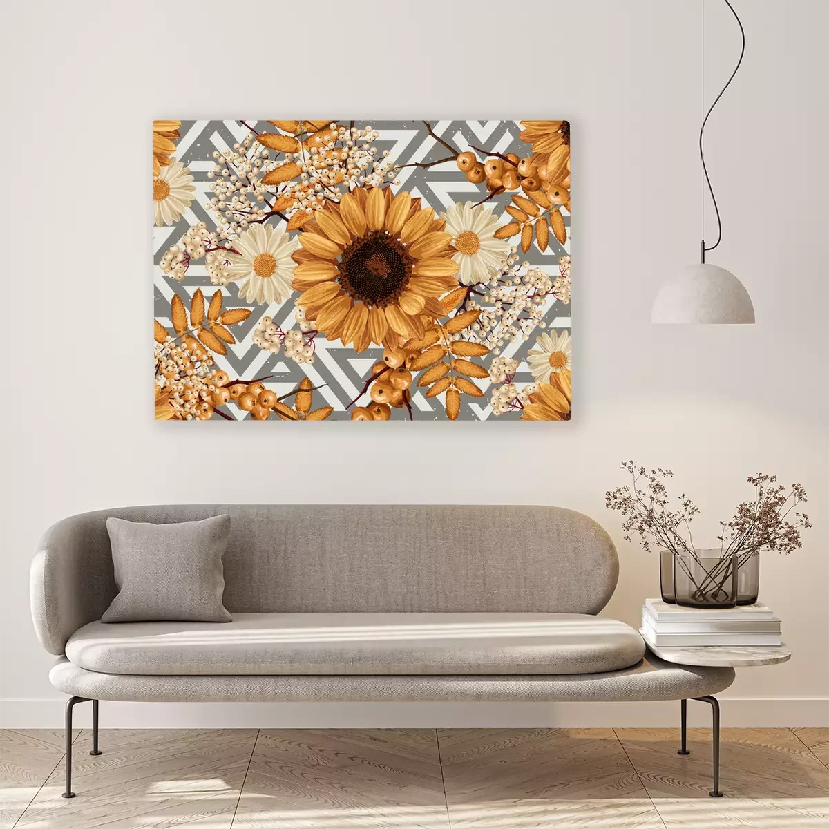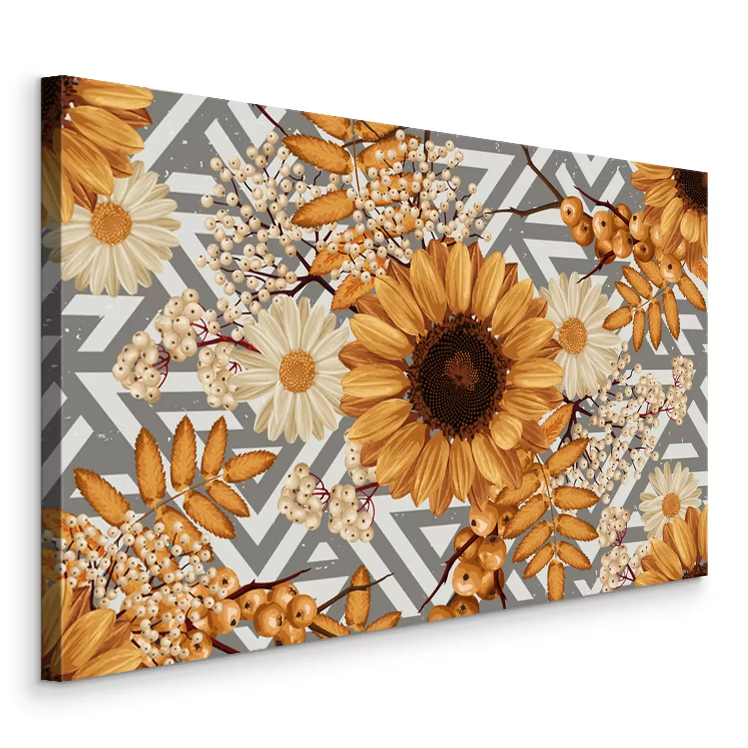 Tableau : Tournesols et rowan sur fond rayé