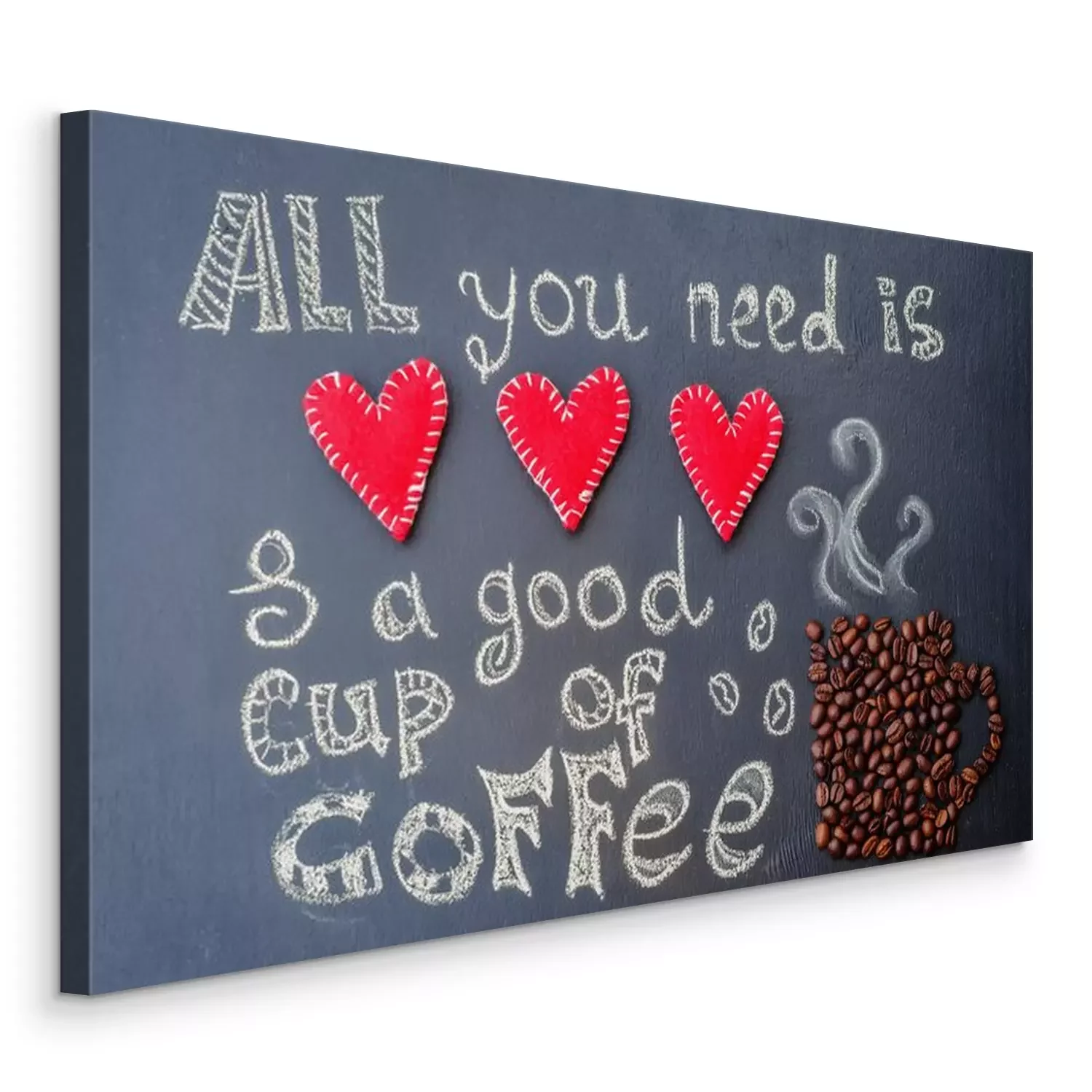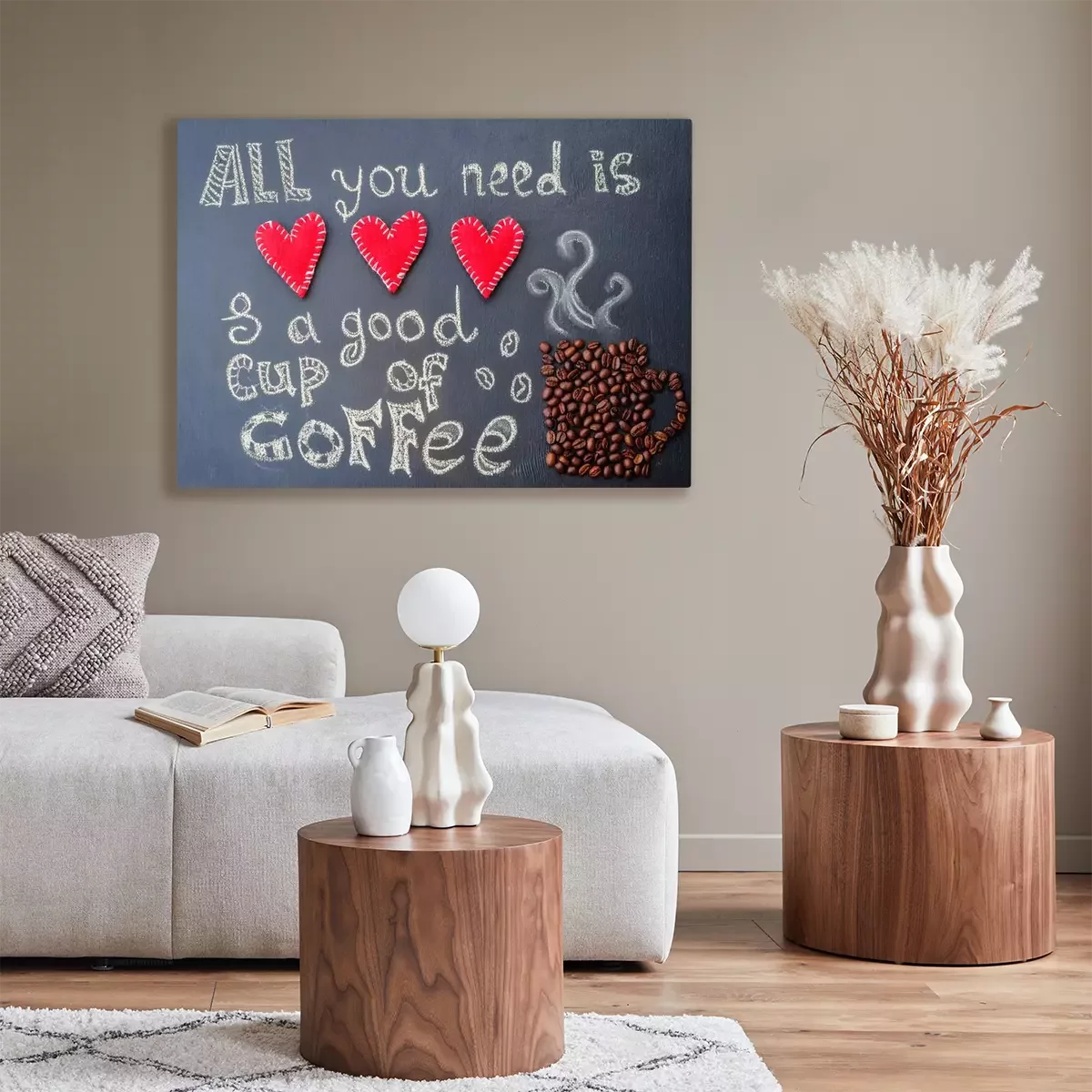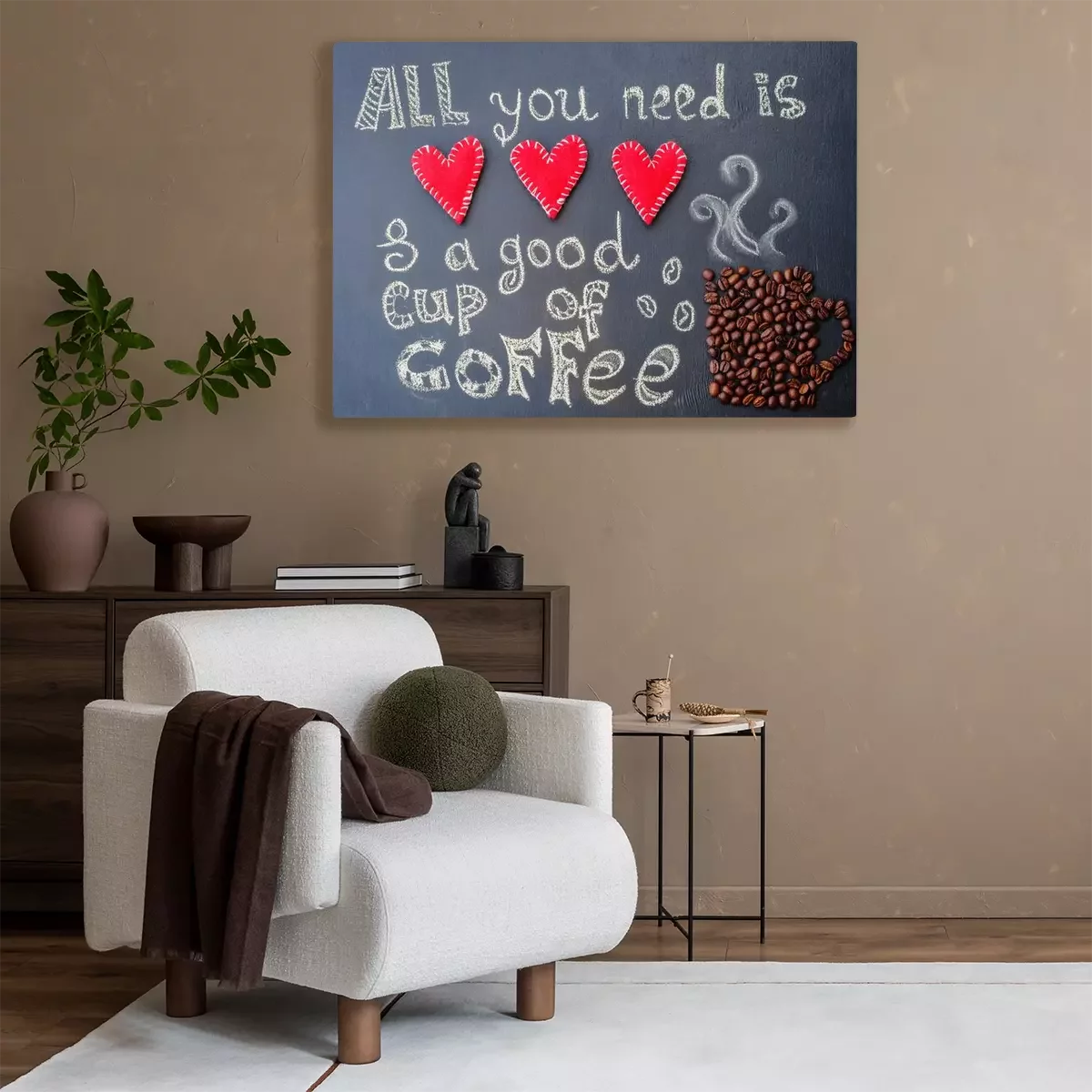 Tableau  Tout ce dont vous avez besoin est l'amour et une bonne tasse de café avec des grains de café