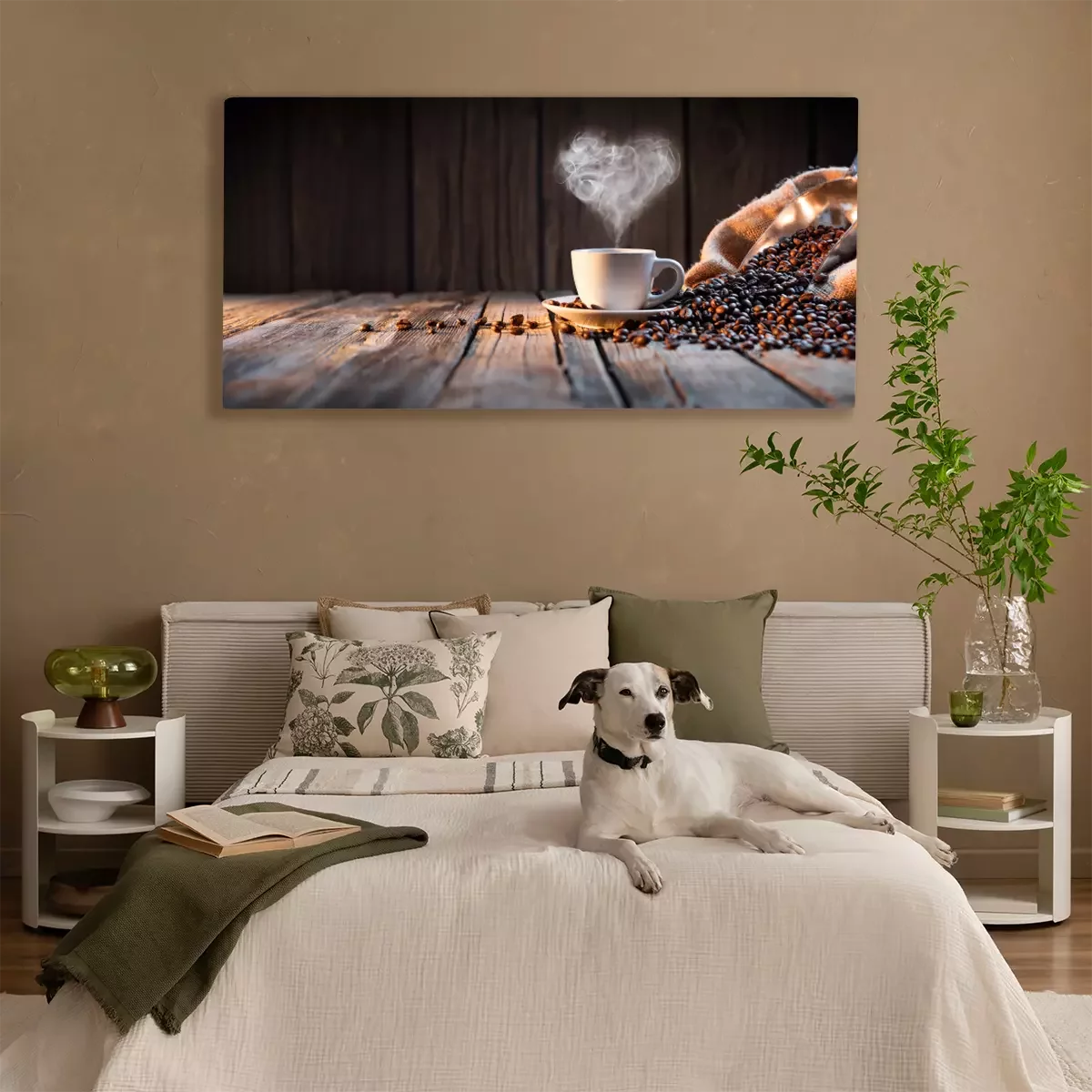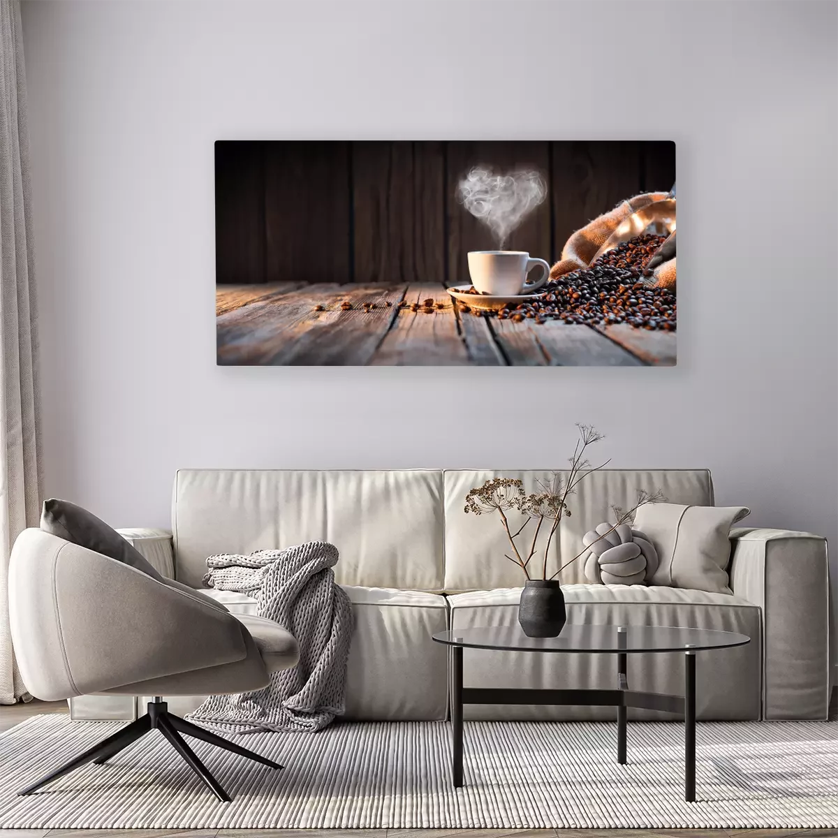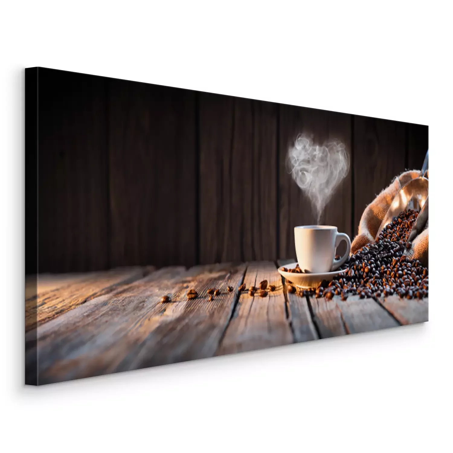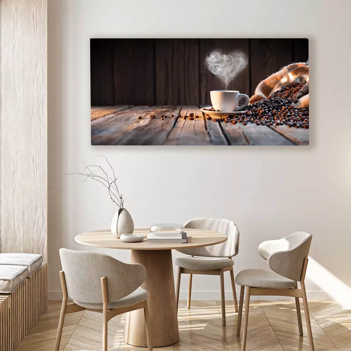 Tableau  Traditionnel, café, tasse, heart-shaped, vapeur, rustique, bois