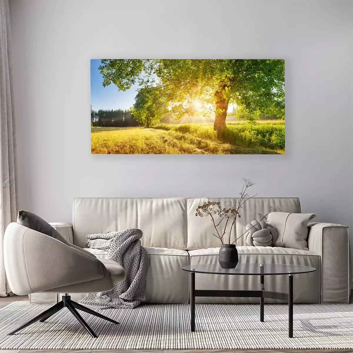 Tableau : Tree foliage in beautiful morning light with sunlight in summer
