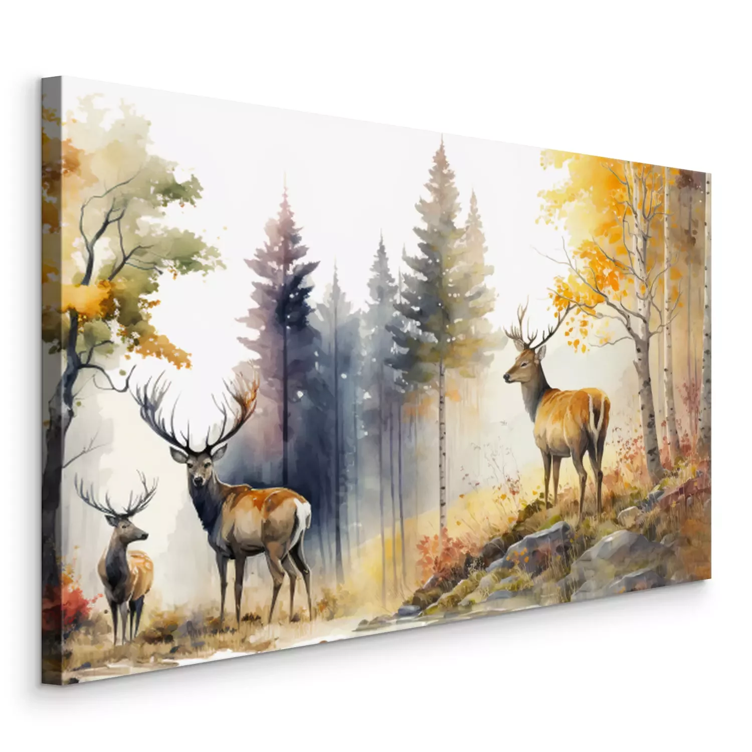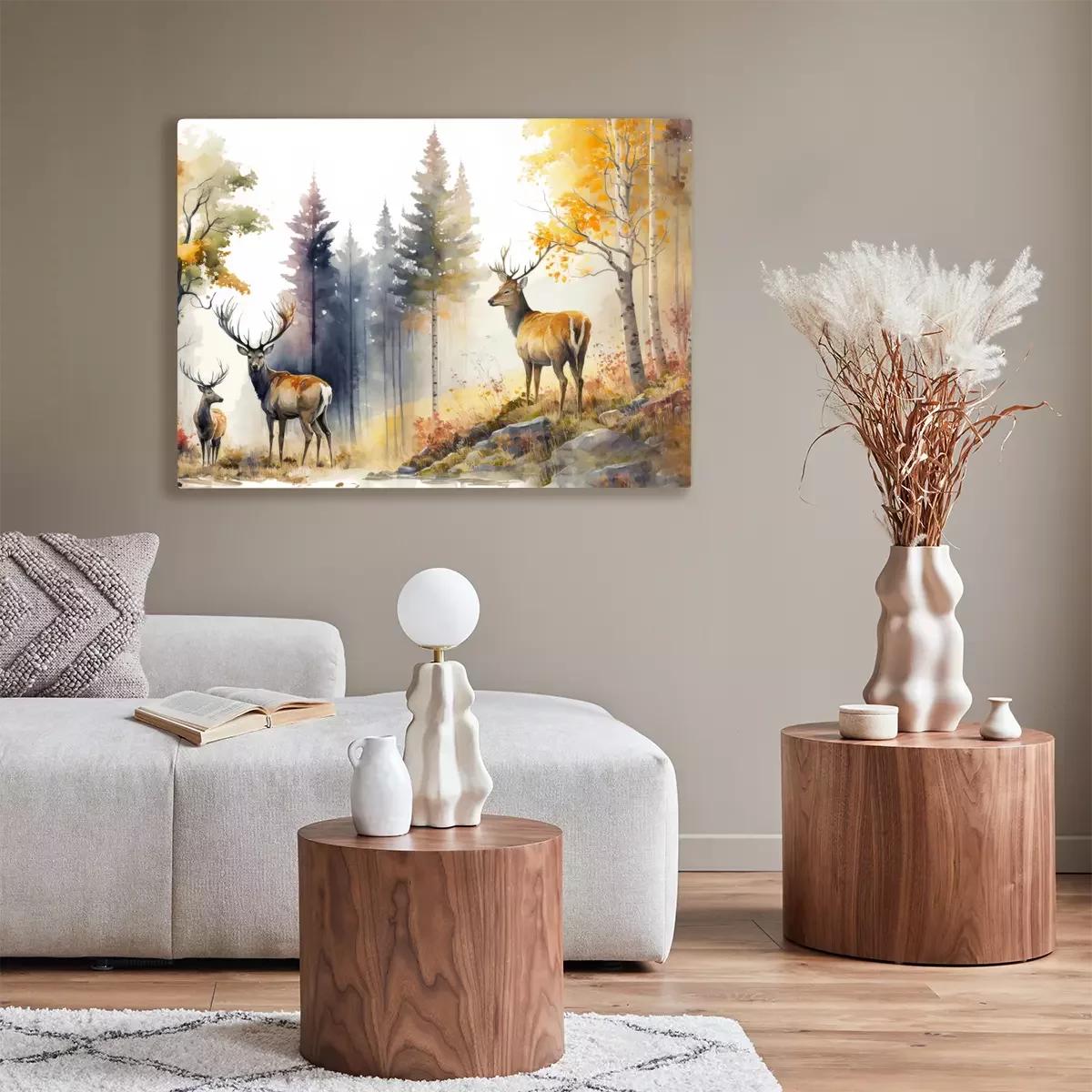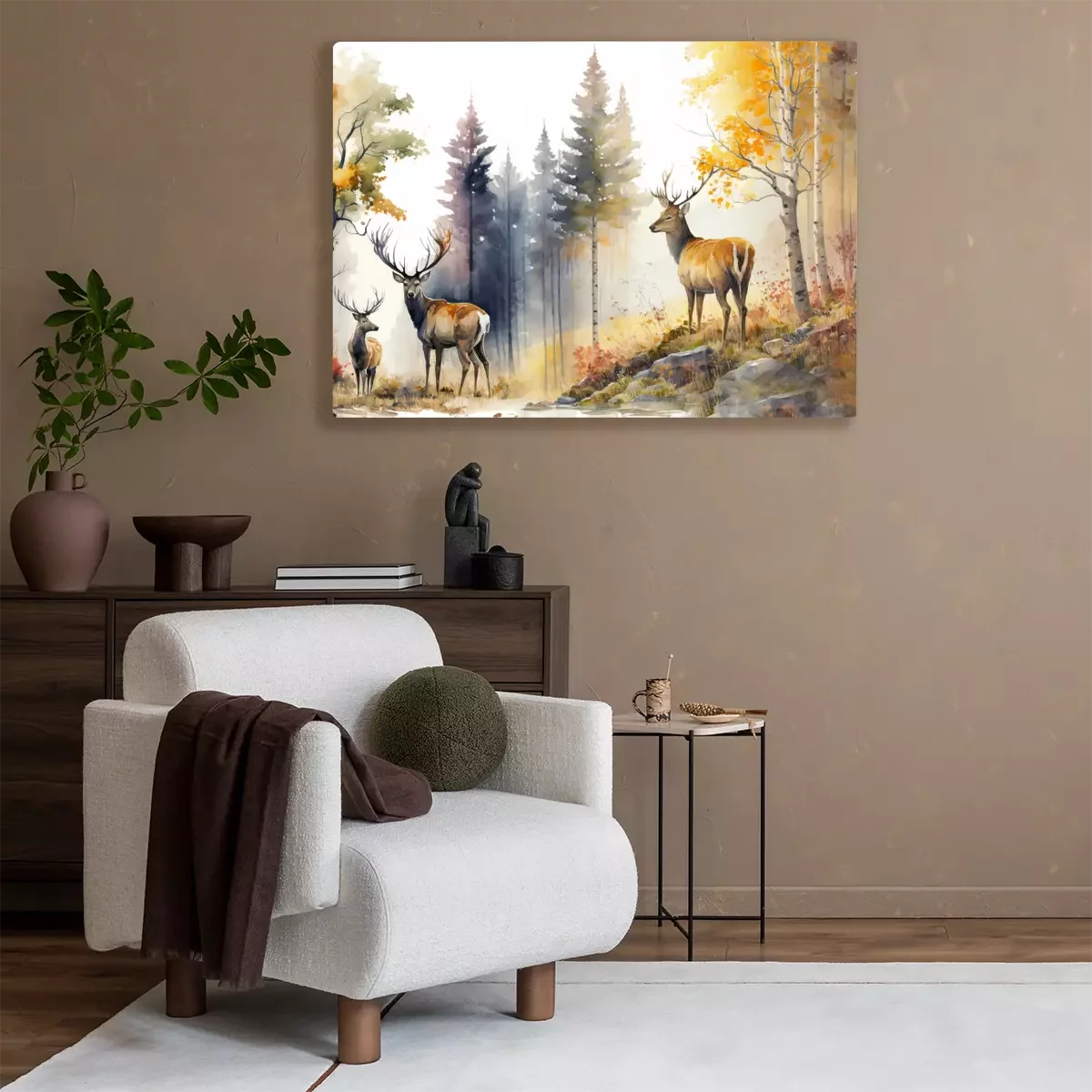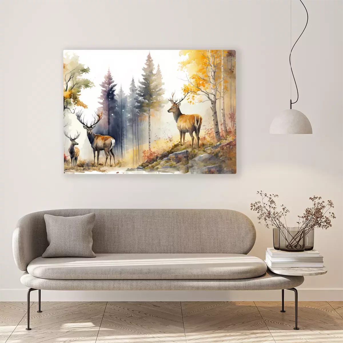 Tableau  Troupeau de cerfs dans la forêt d'automne