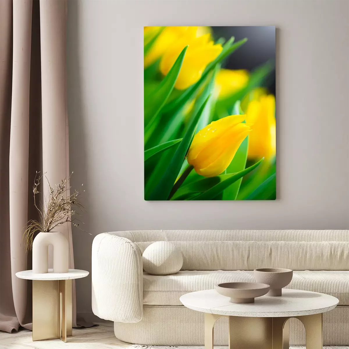 Tableau : Tulipe jaune fleur fond