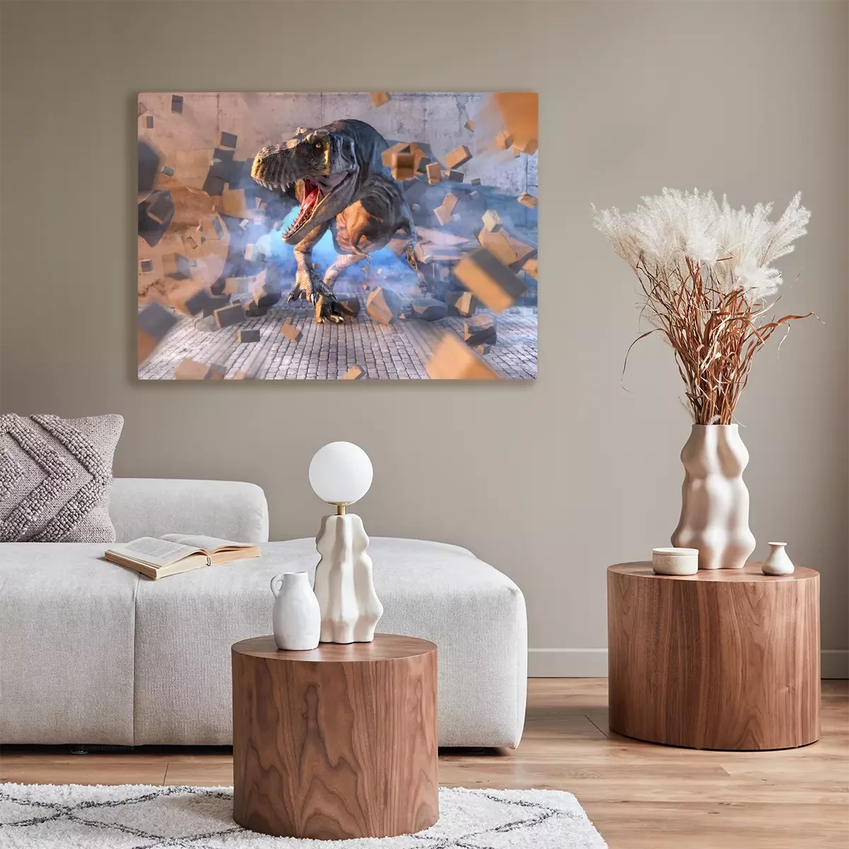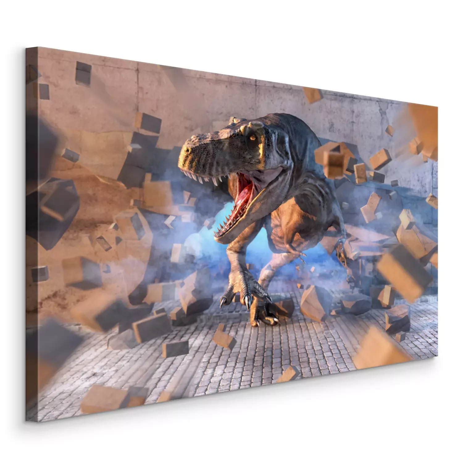 Tableau : Tyrannosaurus Rex menaçant dans un mur de béton