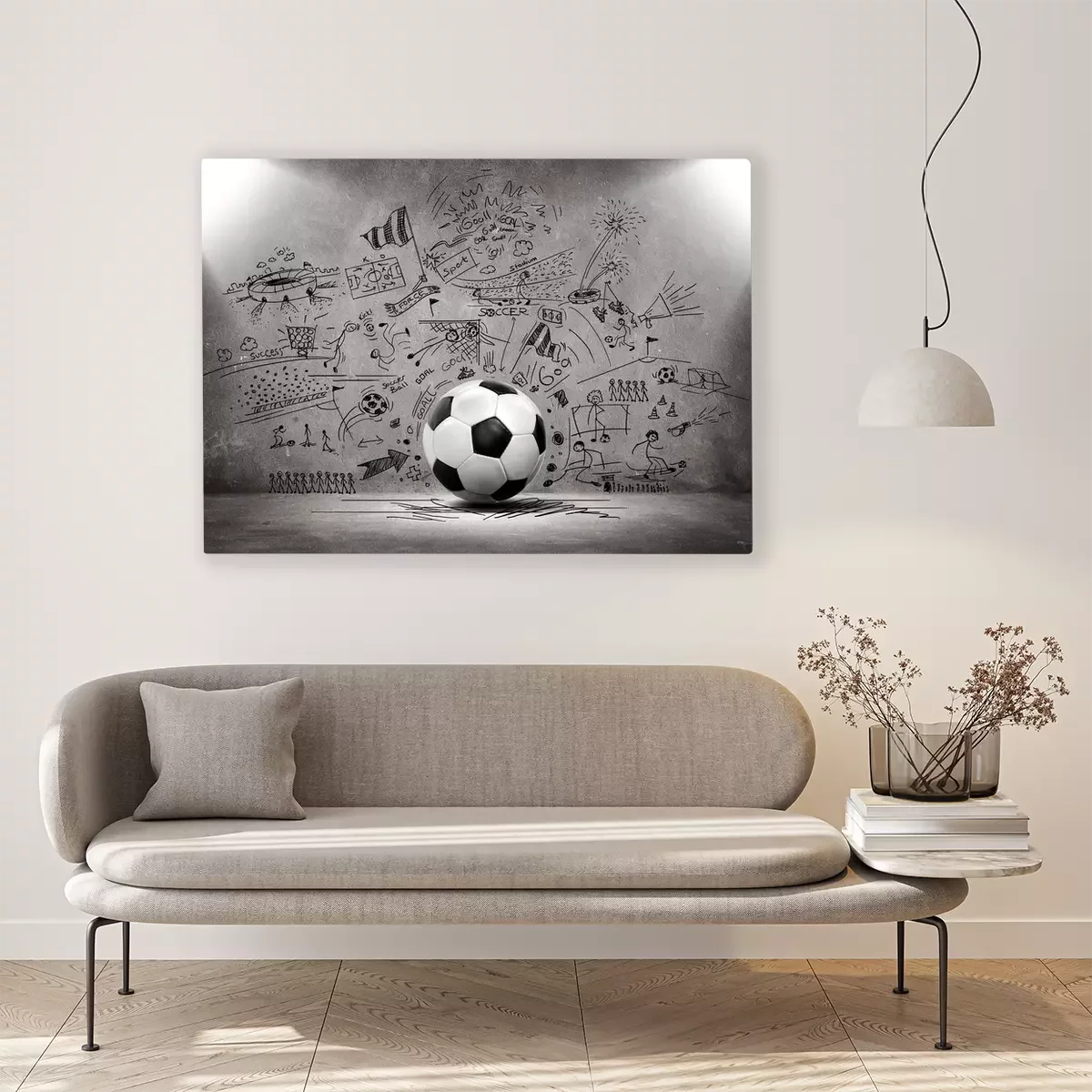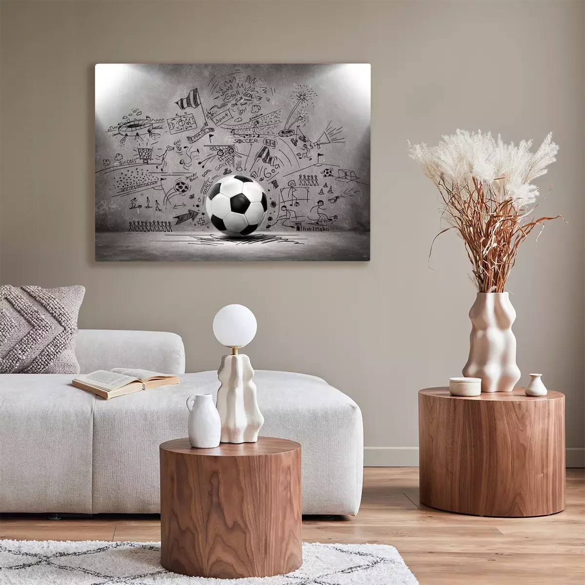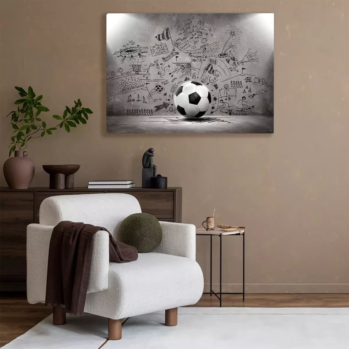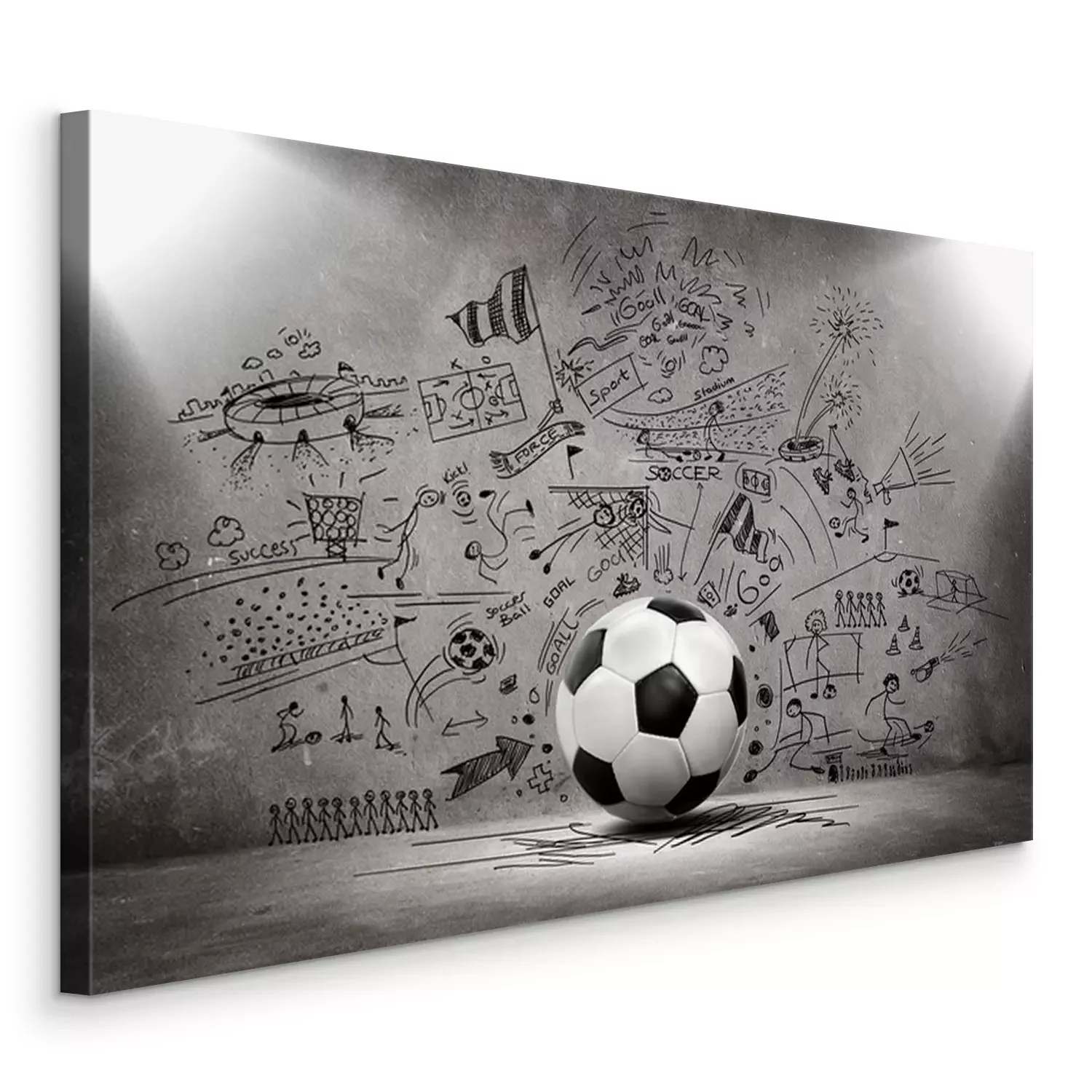 Tableau : Un ballon de football avec un mur de béton en arrière-plan