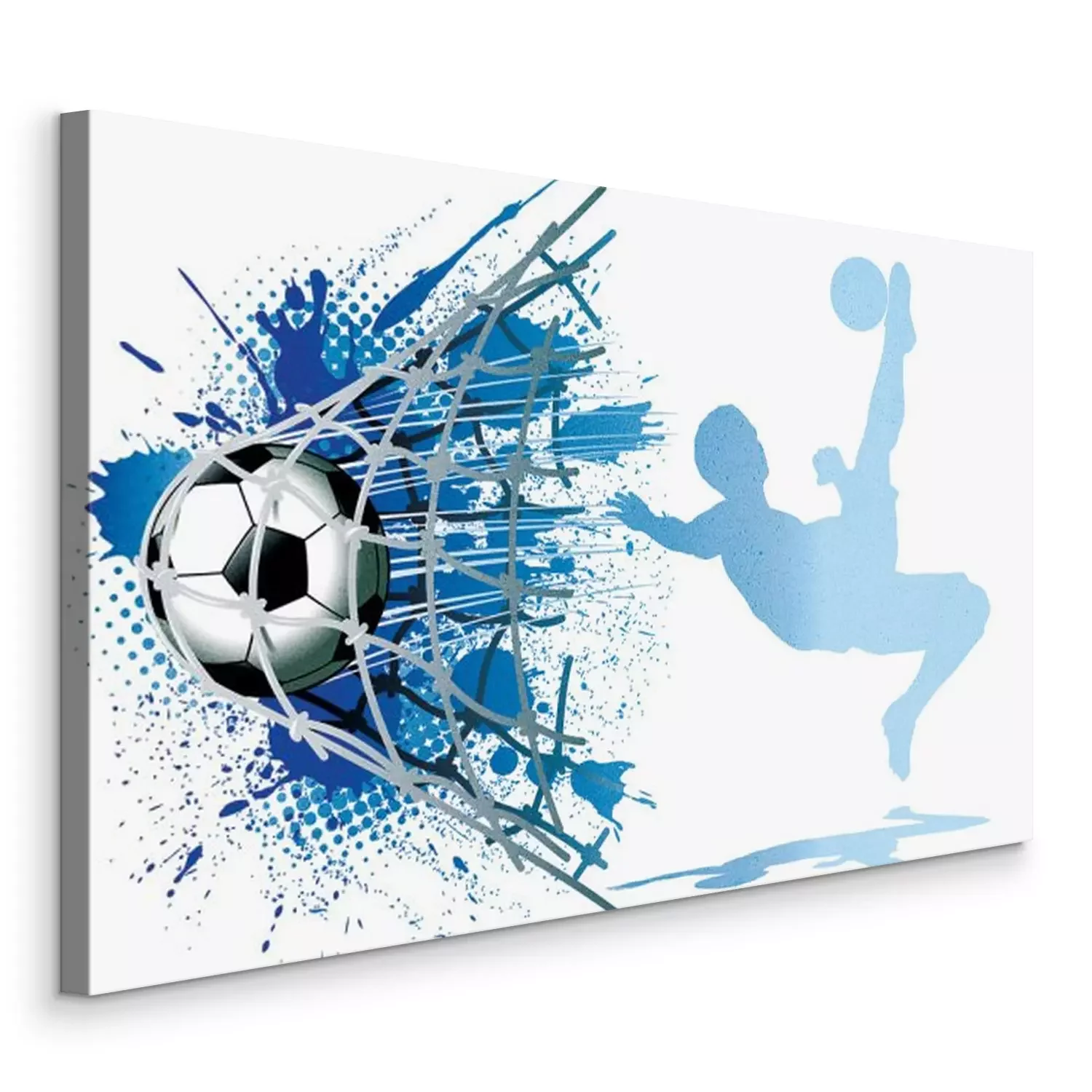 Un ballon de football entrant dans le but et l'ombre du joueur
