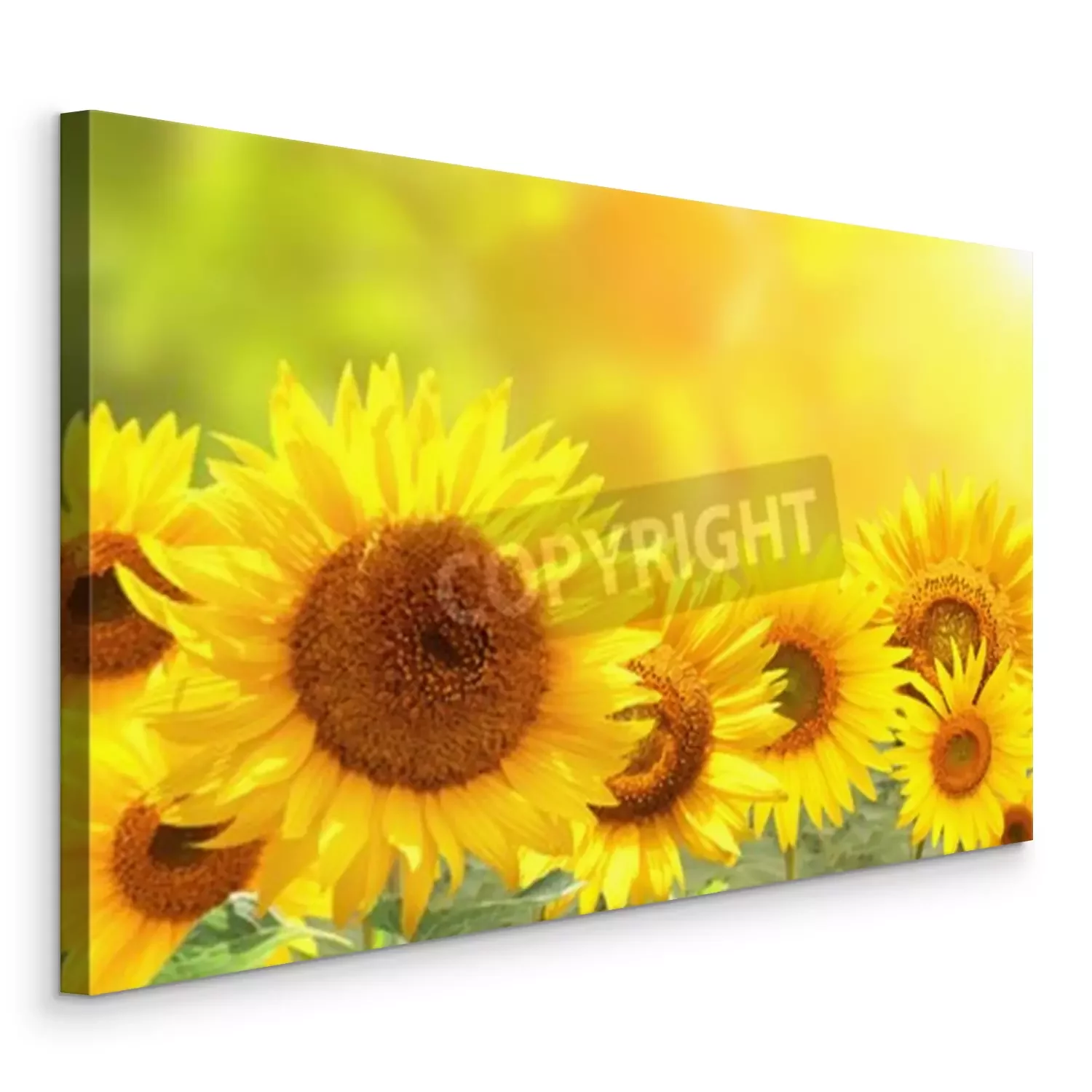 Tableau  Un champ de tournesols sur un arrière-plan flou