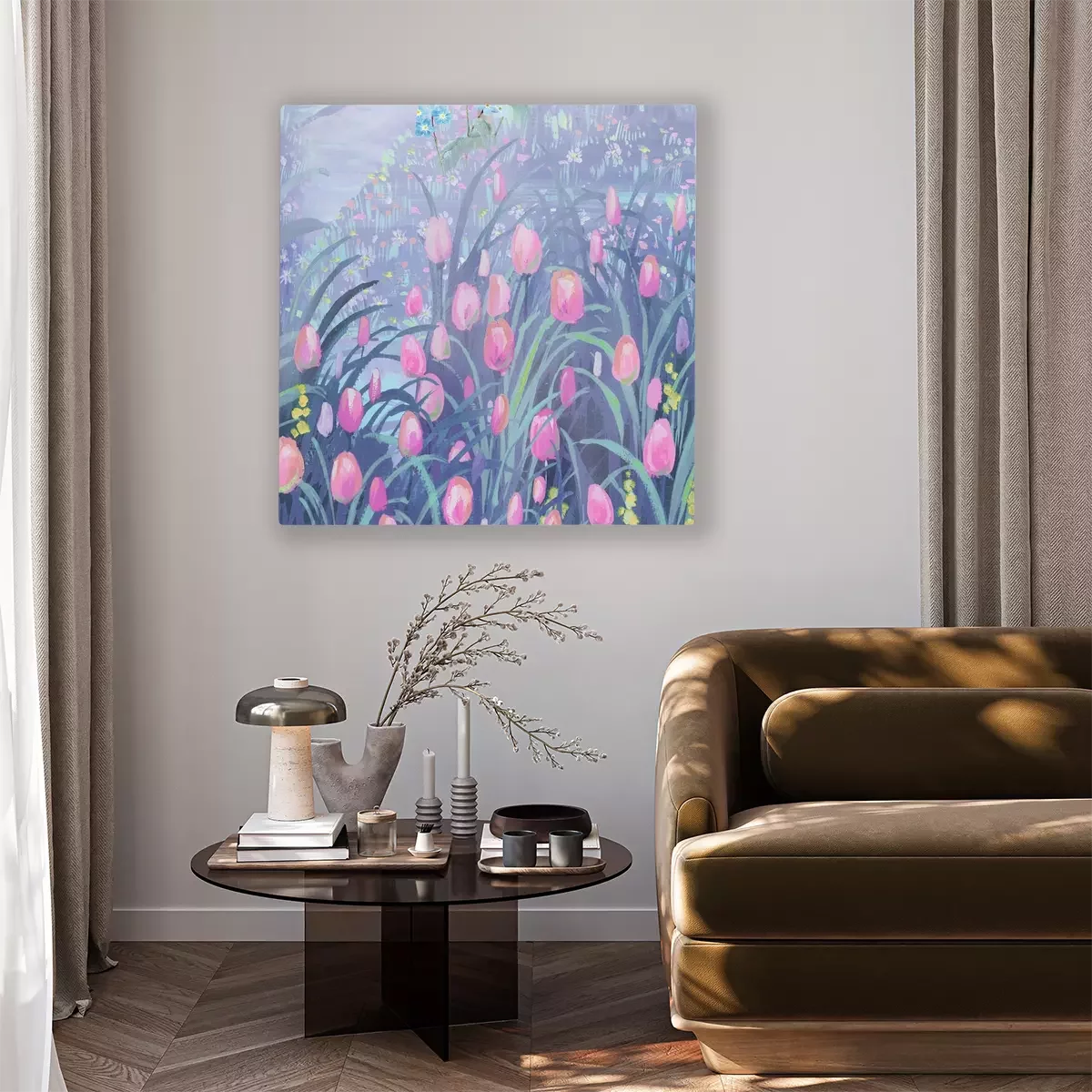 Tableau  Un champ de tulipes roses