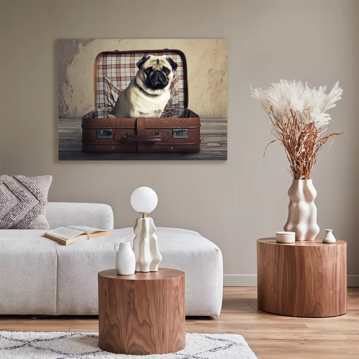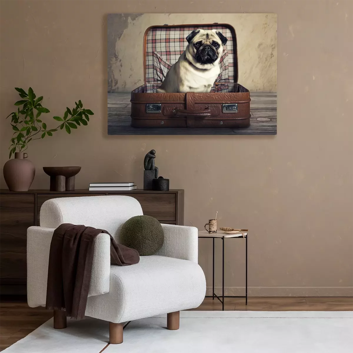Tableau : Un chien dans une valise