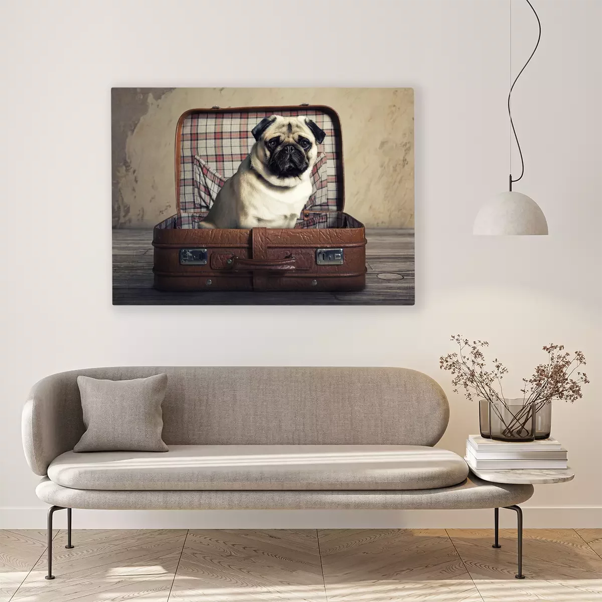 Tableau  Un chien dans une valise