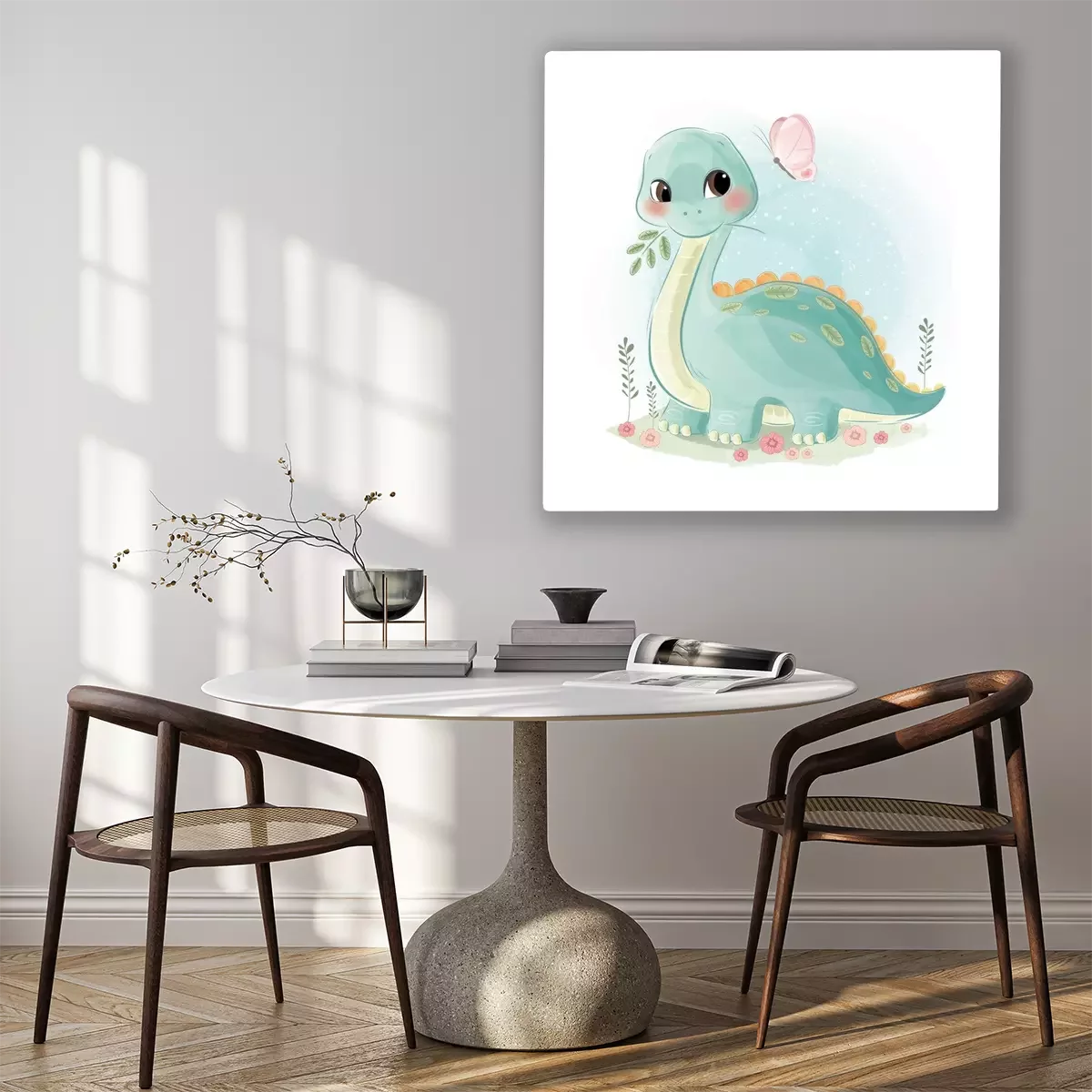 Tableau  Un dinosaure regardant un papillon