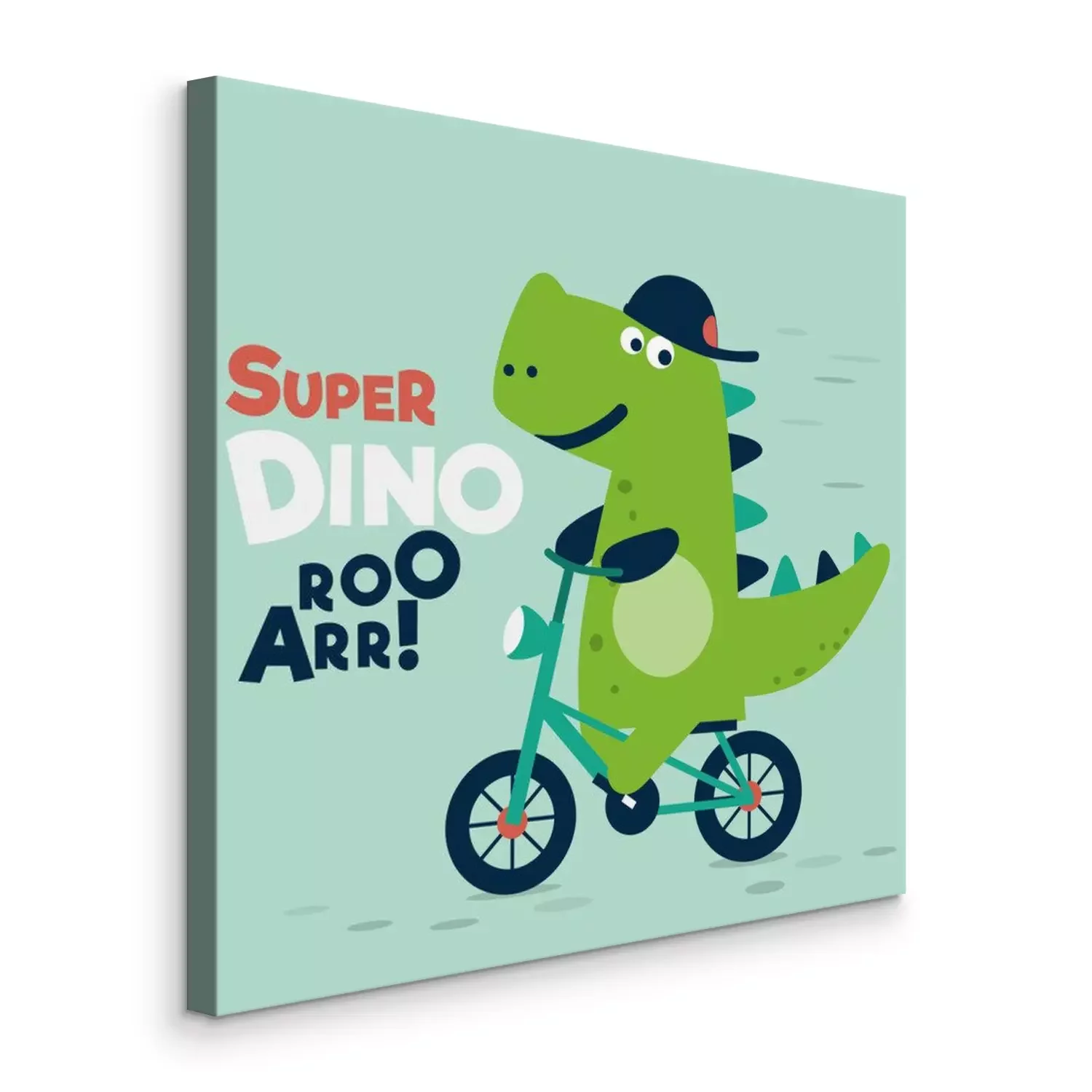 Tableau  Un dinosaure souriant sur un vélo vert