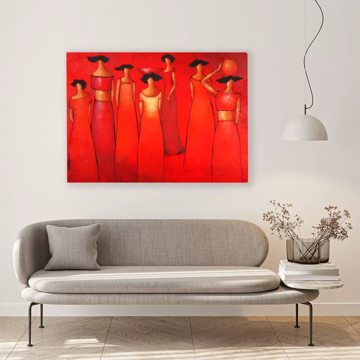 Un groupe de femmes en robes rouges