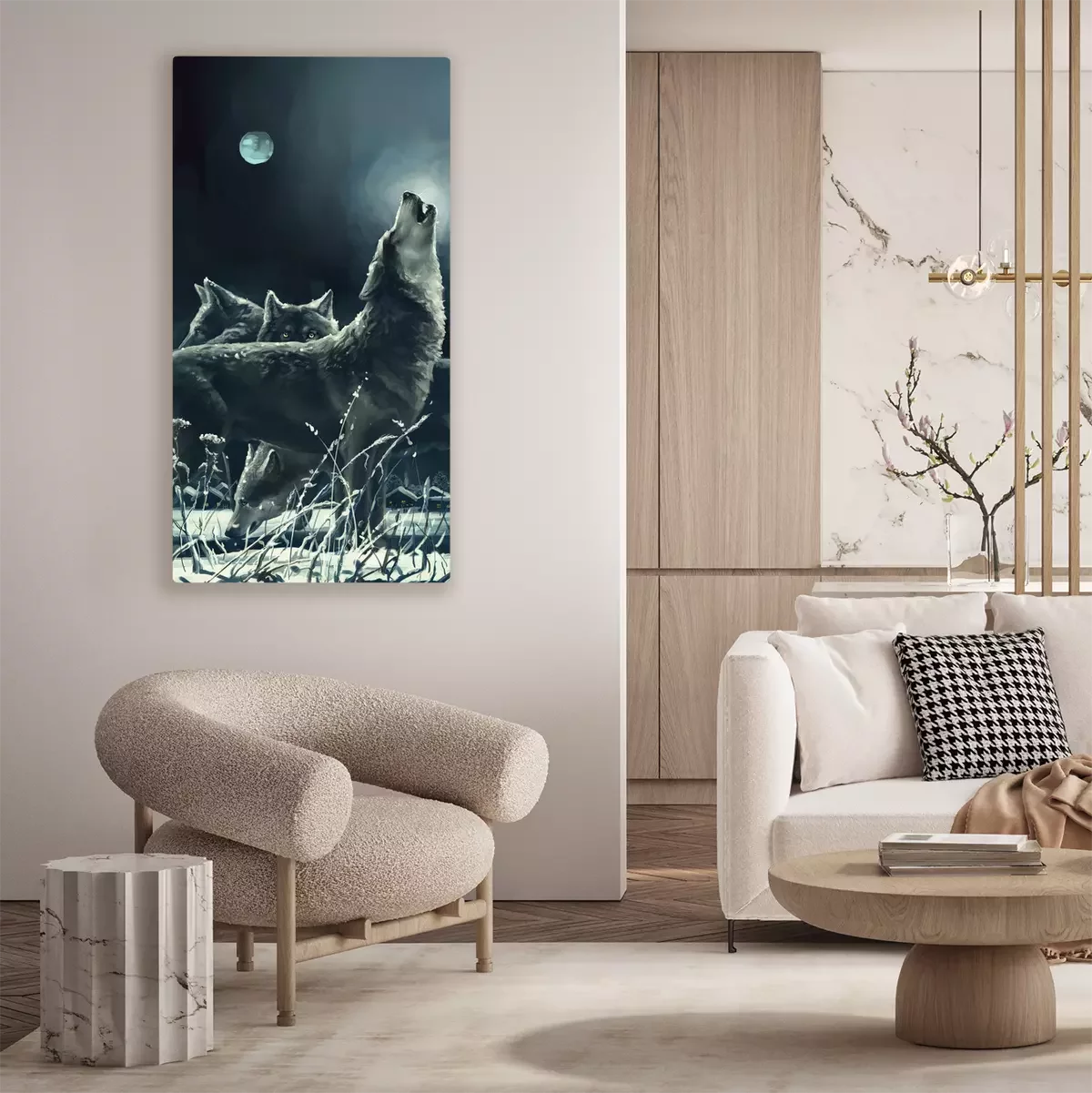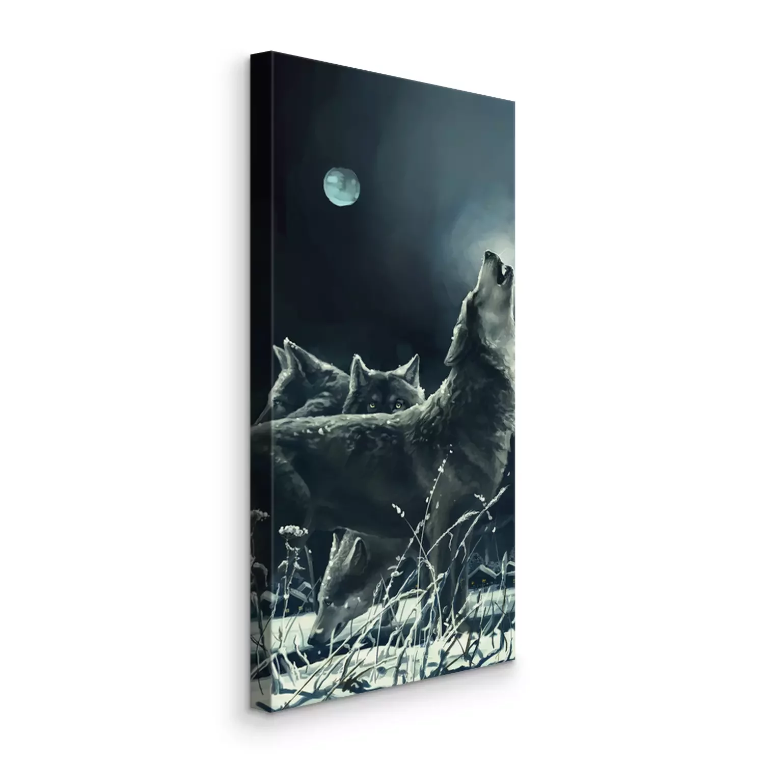 Tableau : Un loup hurlant à la lune
