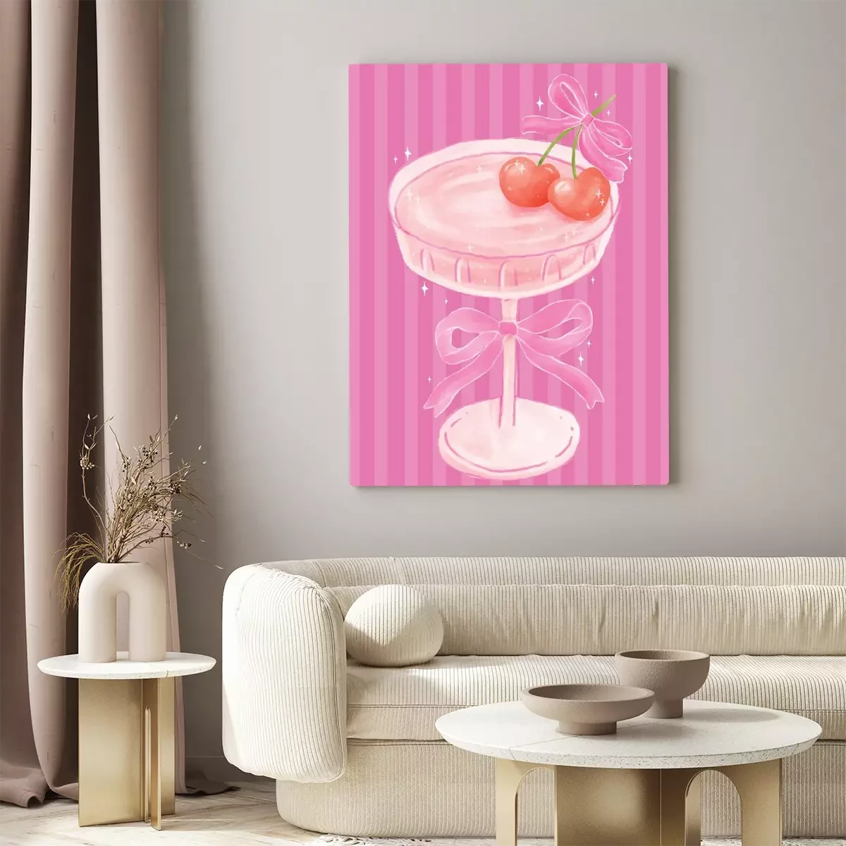 Tableau : Un magnifique verre orné d'un ruban et d'une boisson colorée