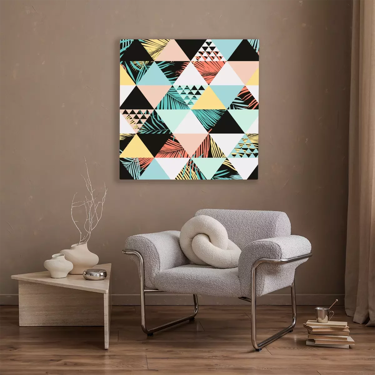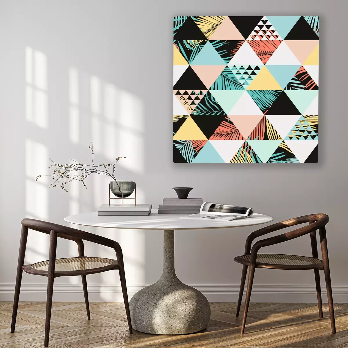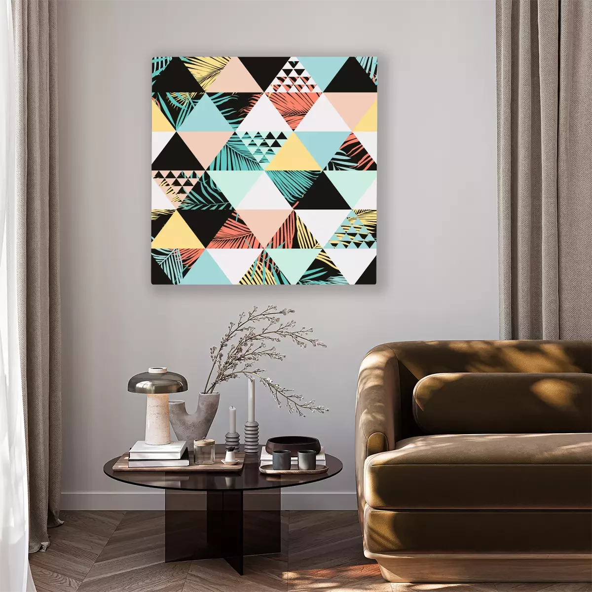 Tableau  Un motif coloré de triangles et de feuilles