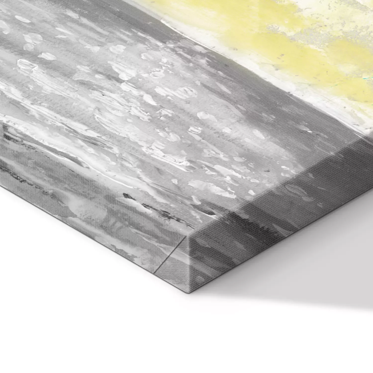 Un navire noir à voiles blanches se détachant sur un ciel jaune
