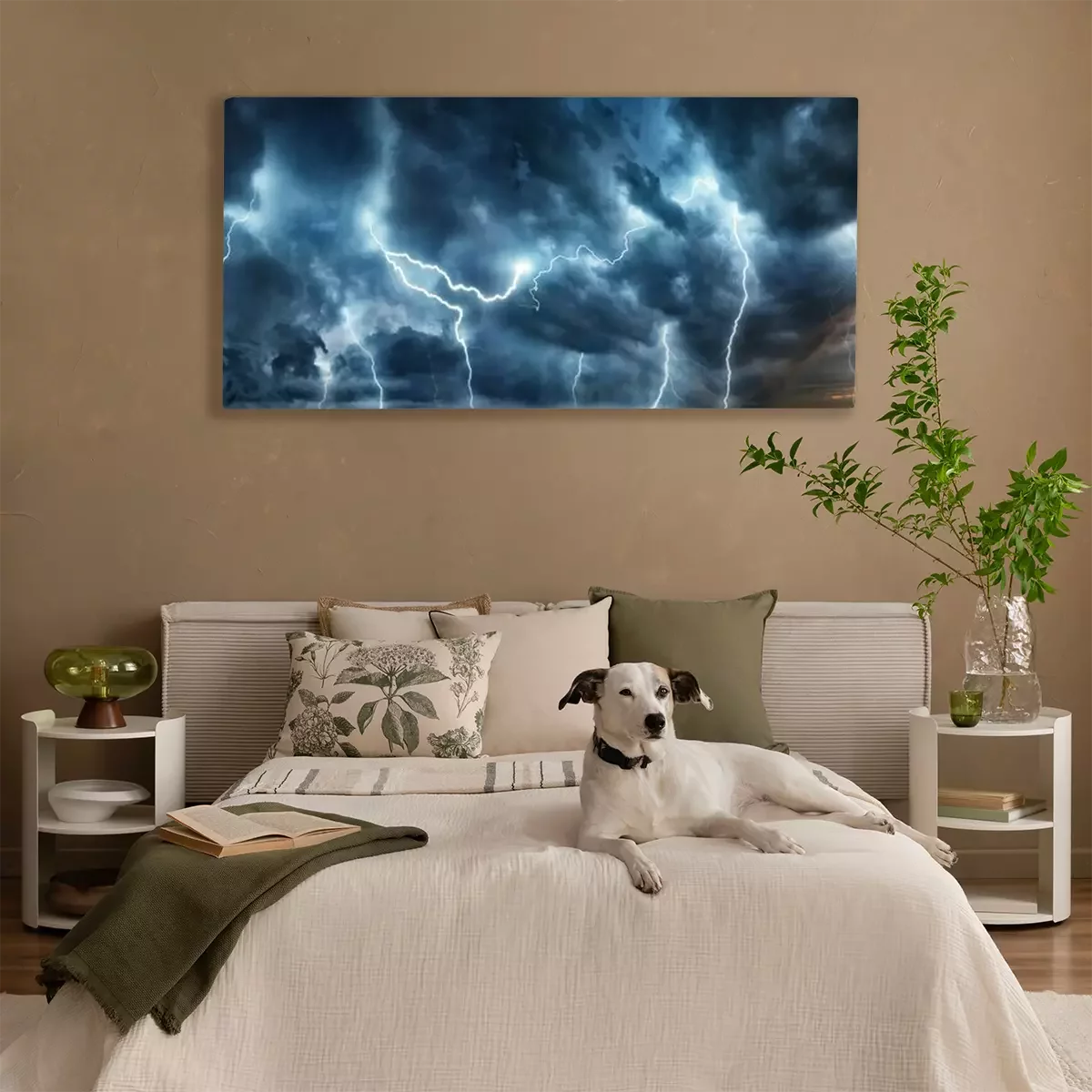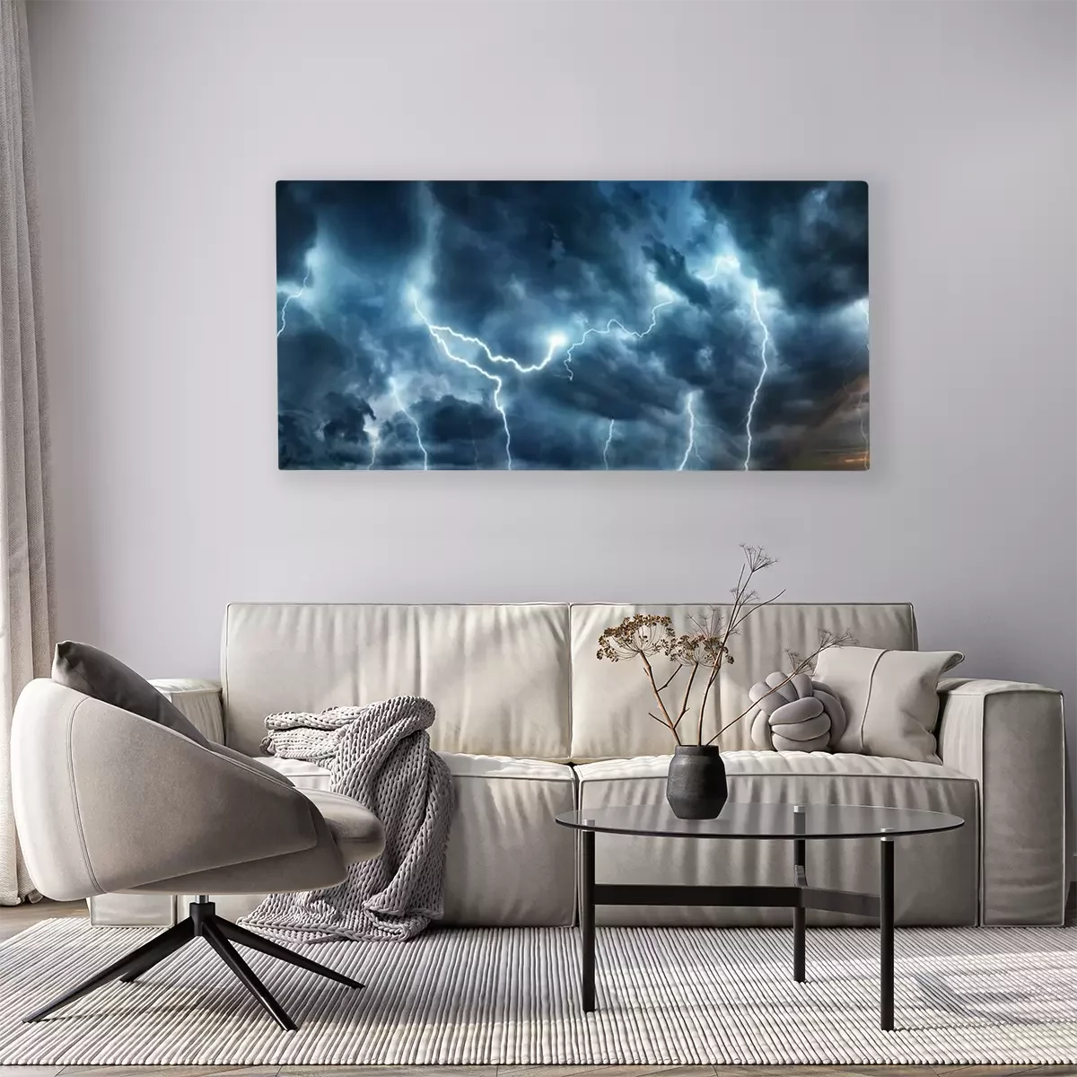 Tableau  Un orage éclair éclaire le ciel nocturne. Concept sur la météo, les cataclysmes (ouragan, typhon, tornade, tempête)