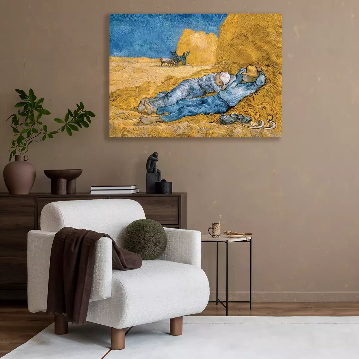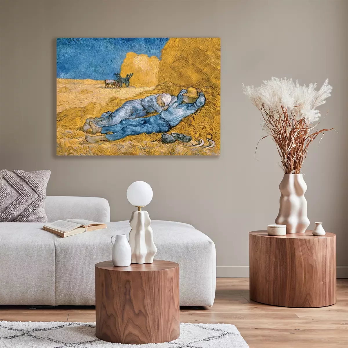 Un paysage de champs avec des agriculteurs sous un ciel bleu