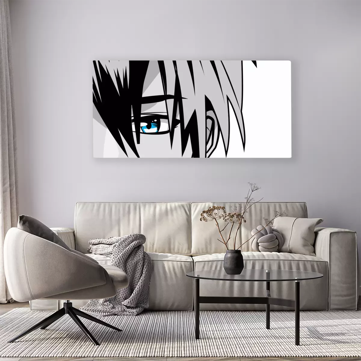 Tableau : Un personnage d'anime aux yeux bleus