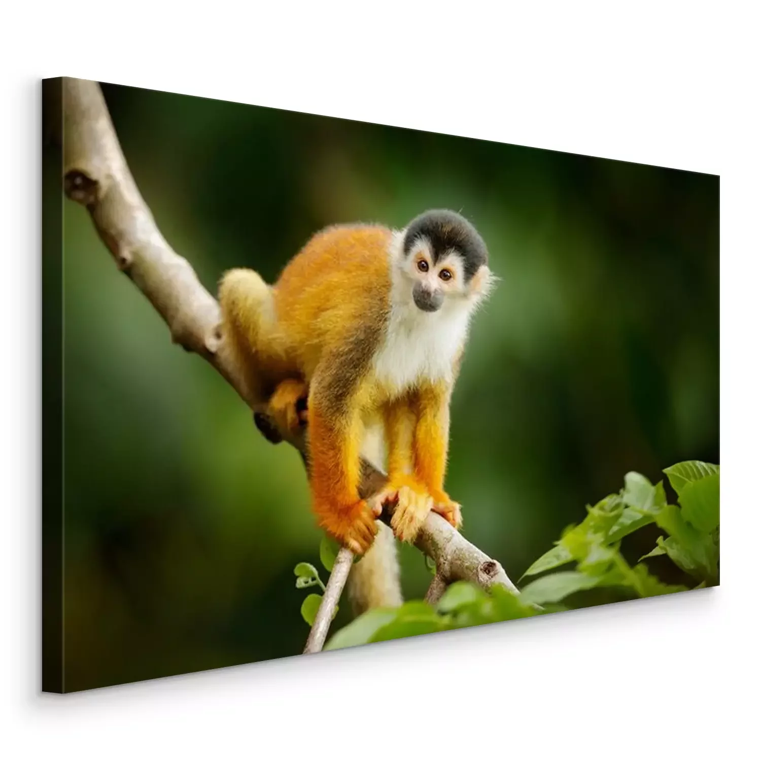 Tableau  Un singe-écureuil assis sur le tronc d'un arbre à feuilles vertes