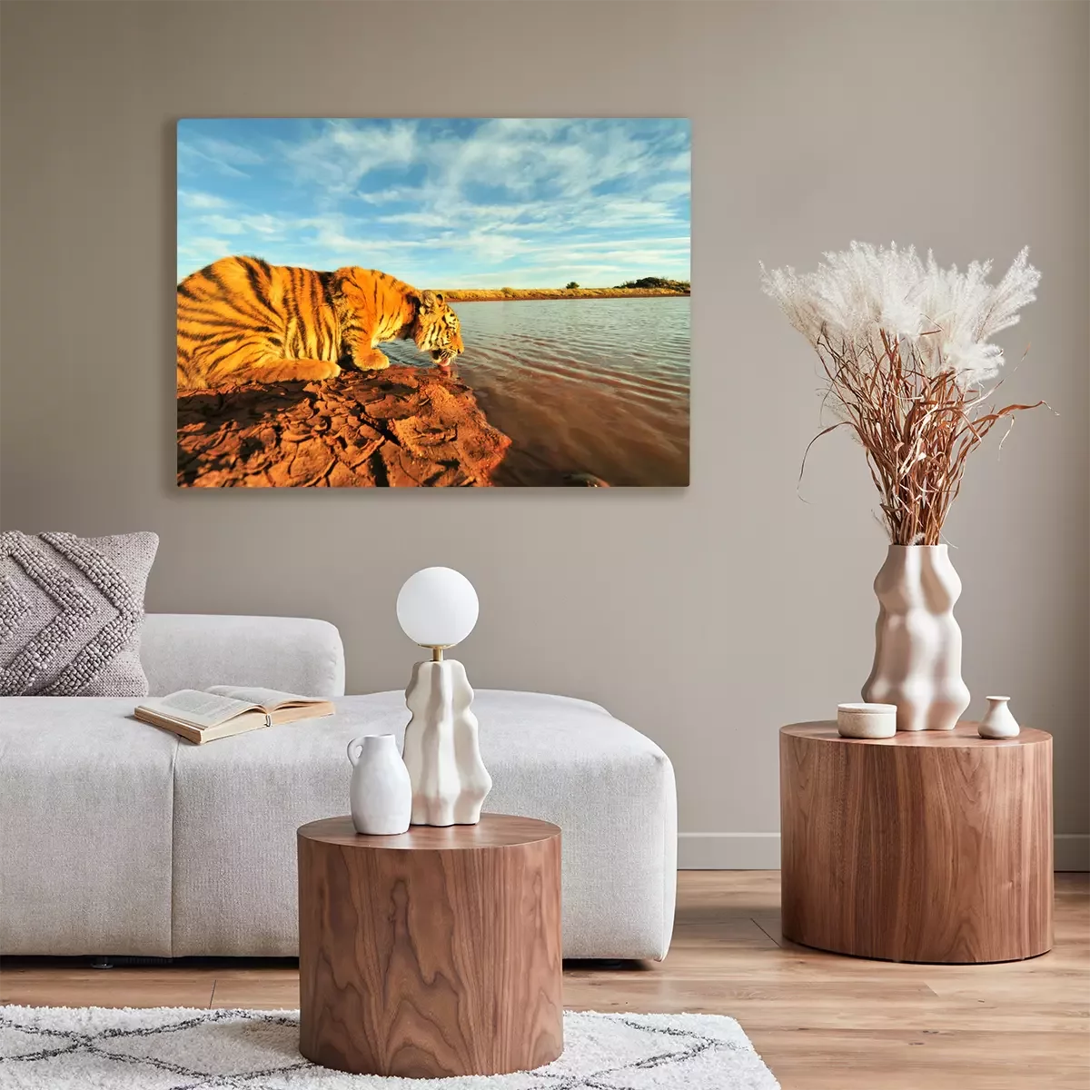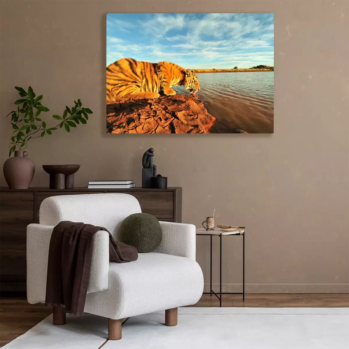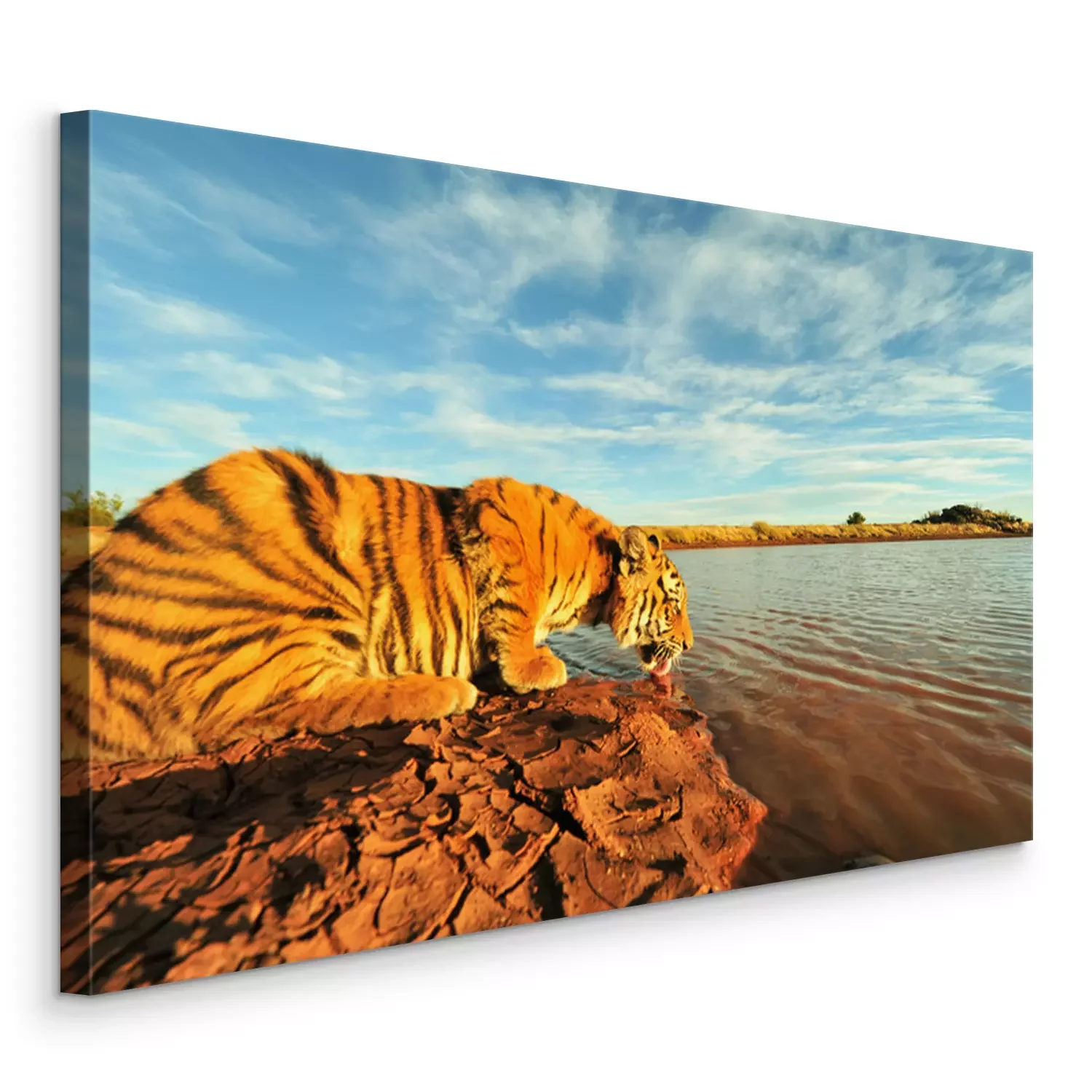Tableau : Un tigre buvant à la rivière