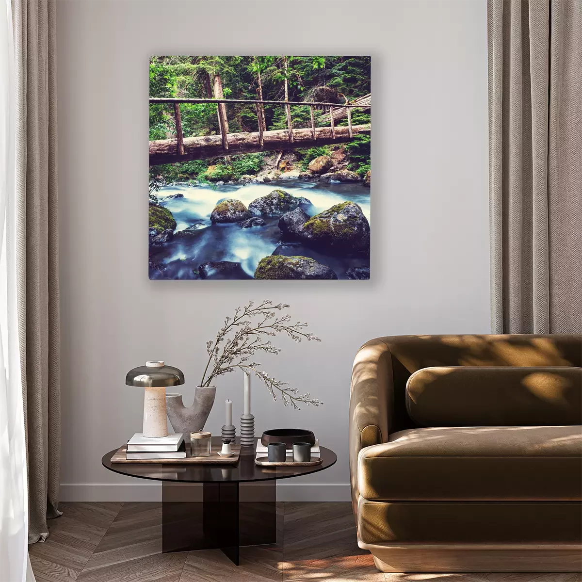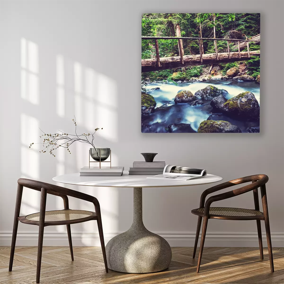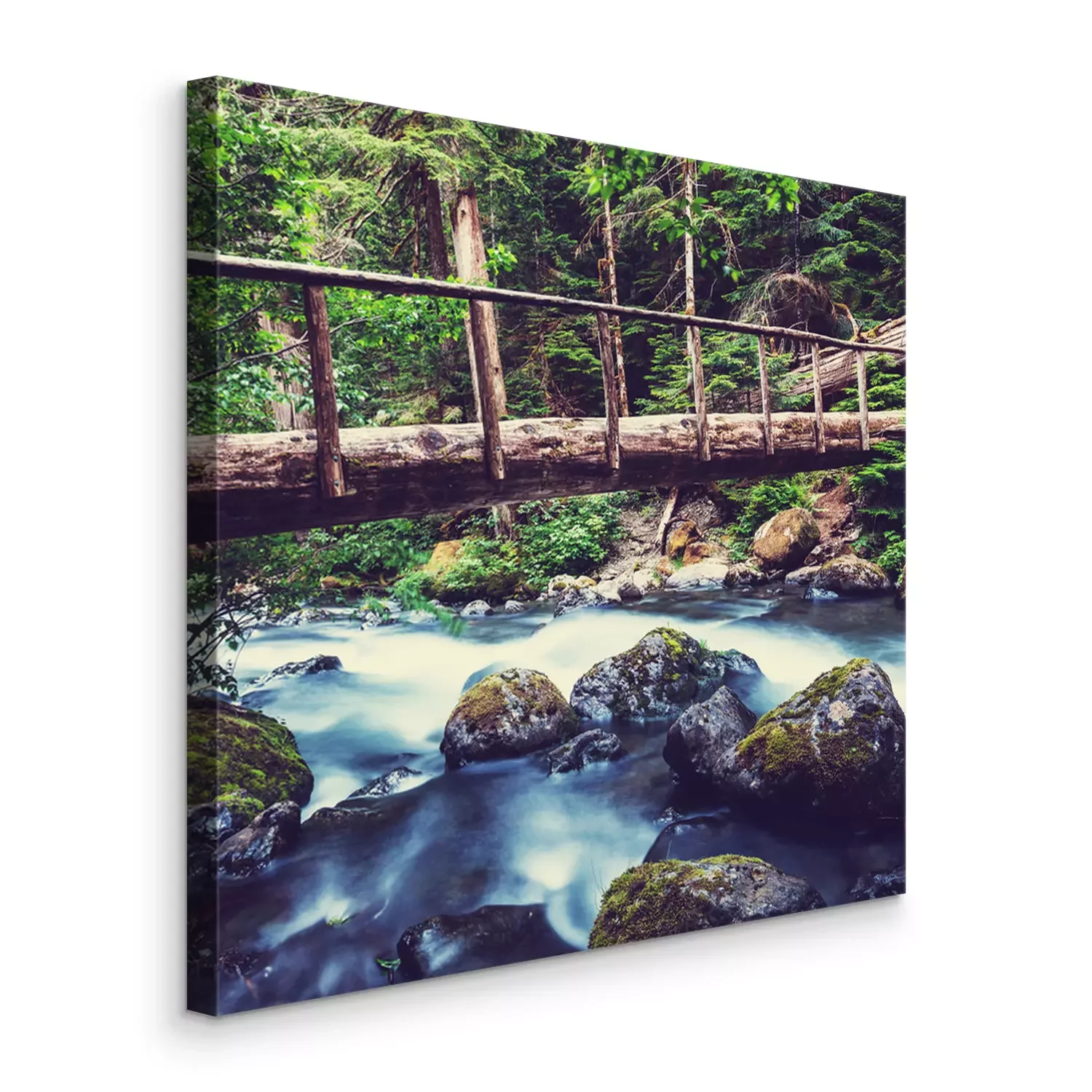Tableau  Un torrent impétueux sous la passerelle
