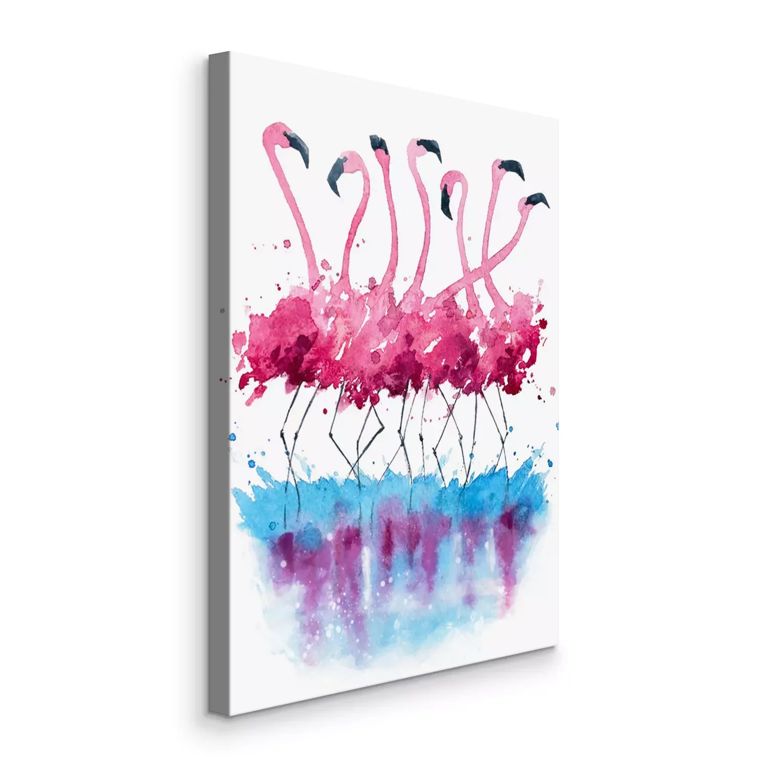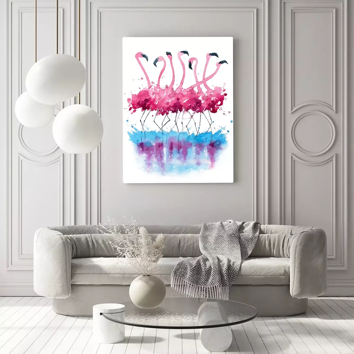 Tableau  Un troupeau de flamants roses à l'aquarelle
