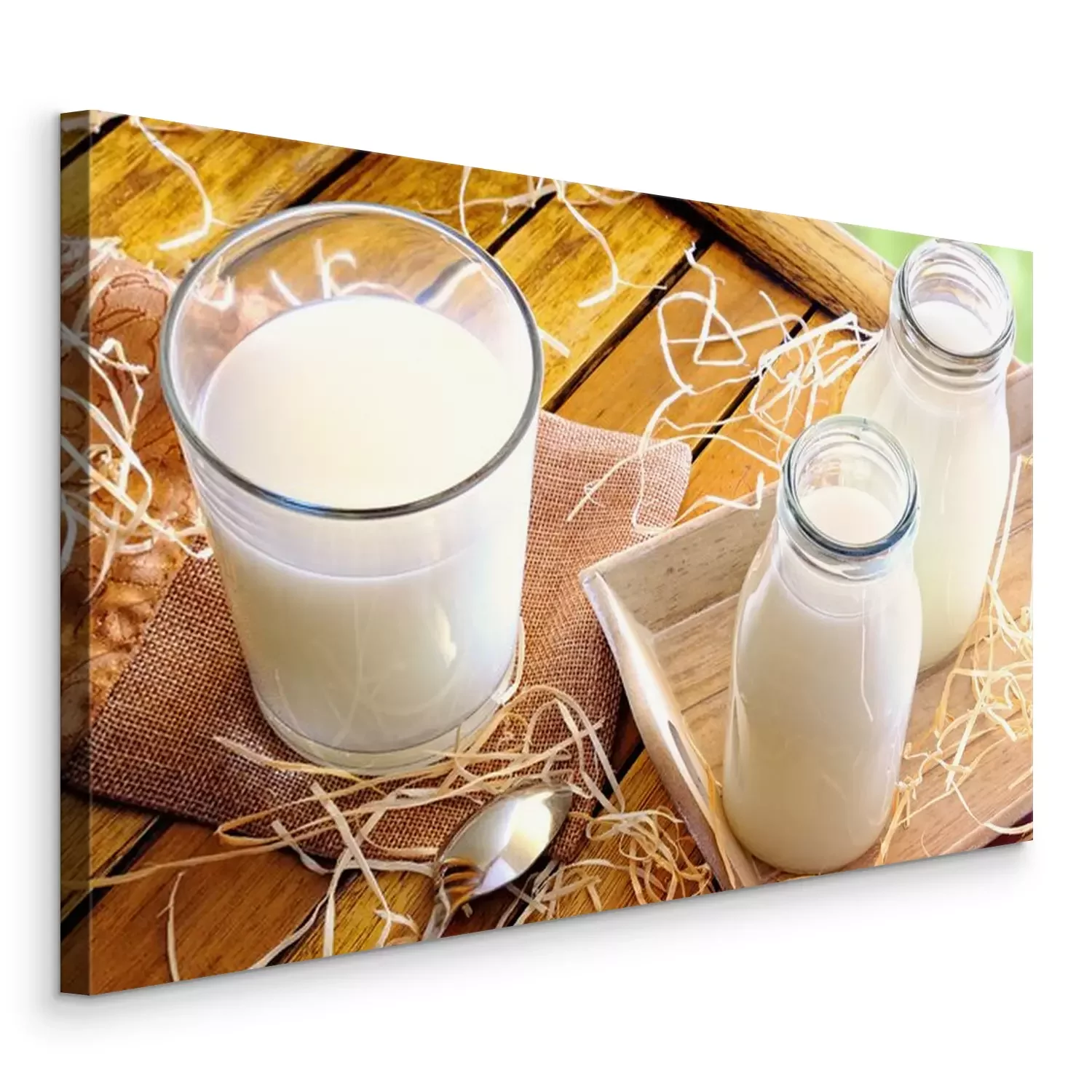 Tableau  Un verre de lait sur une table sur le champ Top View