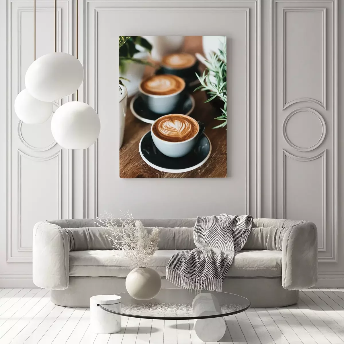 Tableau : Une ambiance naturelle avec des tasses de café au milieu des fleurs