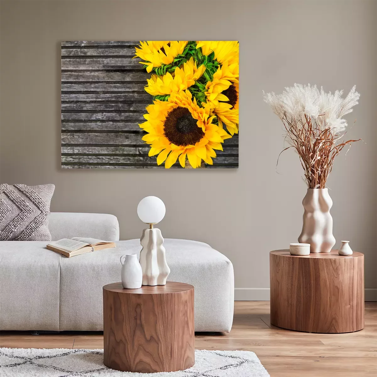 Tournesols et bois rustique