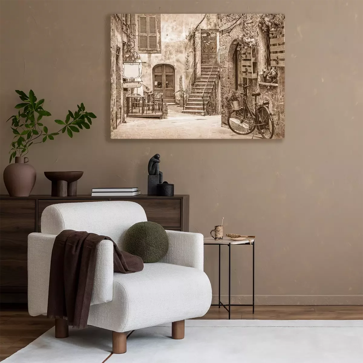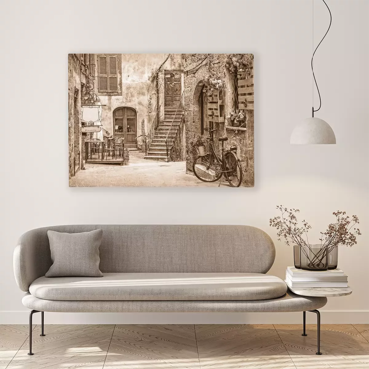 Une charmante rue pavée dans une ville tranquille