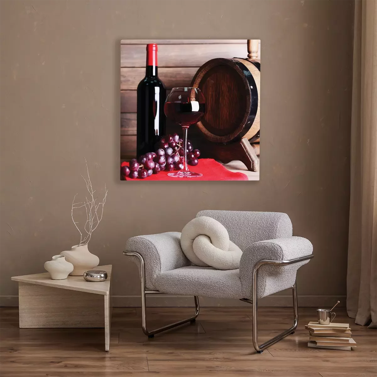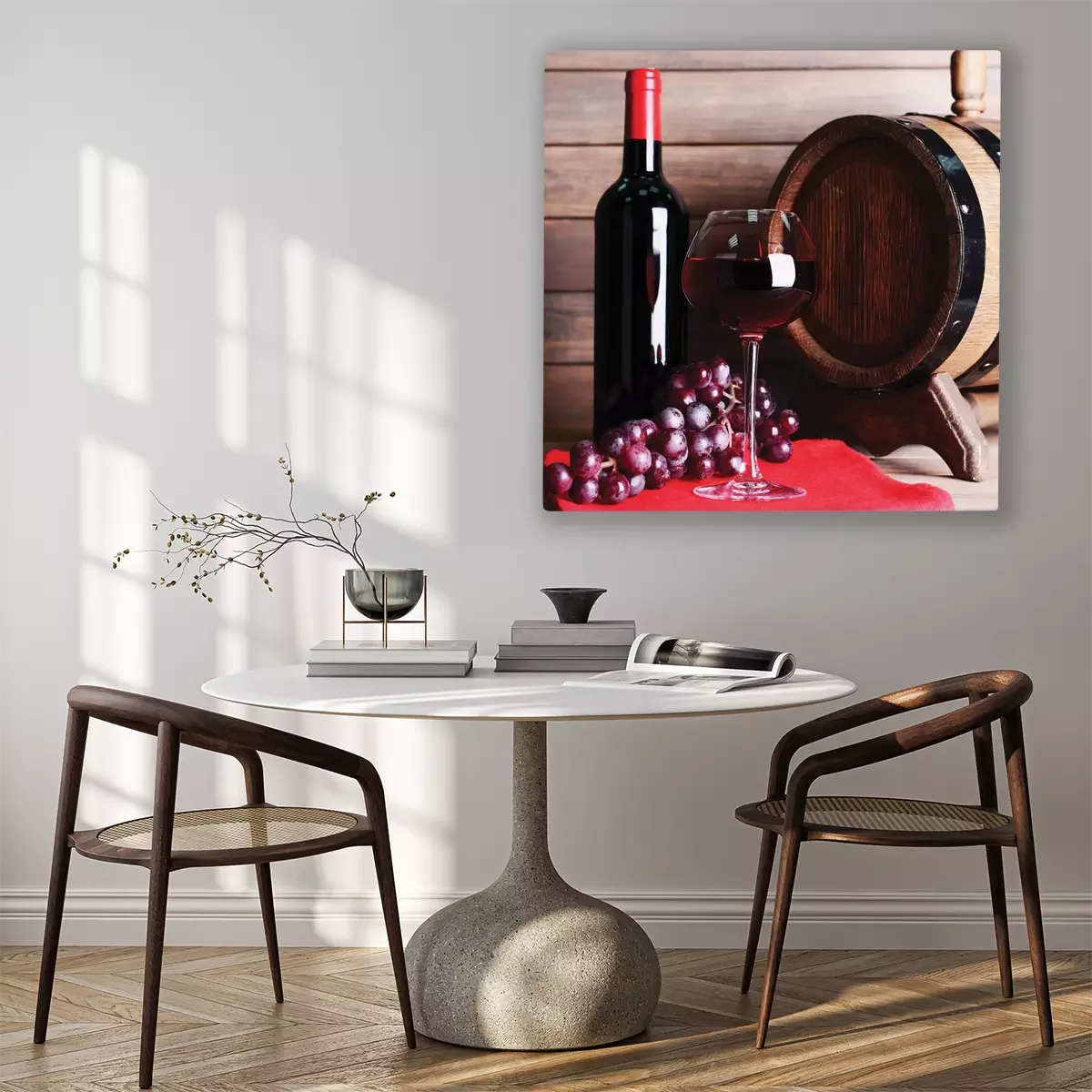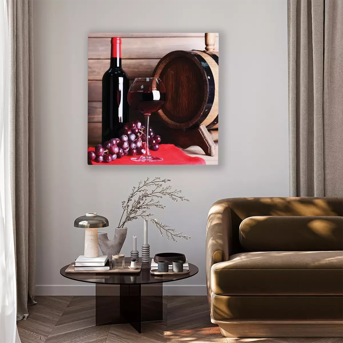 Une composition de vin à base de raisins et d'un fût en bois