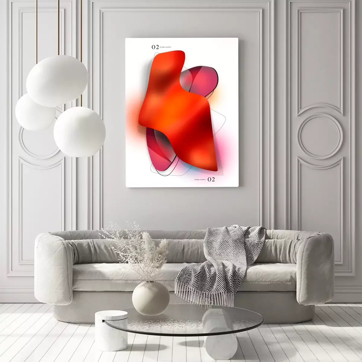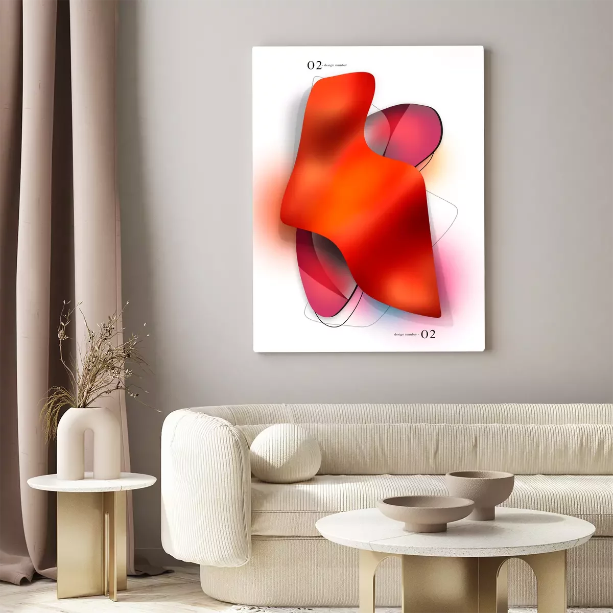 Une composition géométrique fluide dans les tons orange et rose